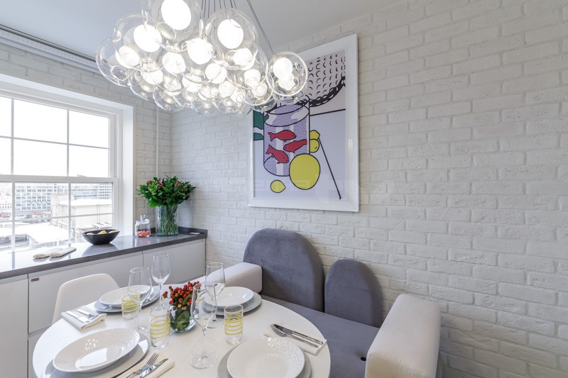 · Рельефную отделку стены в области обеденной зоны, представленную искусственным кирпичом с различной текстурой.