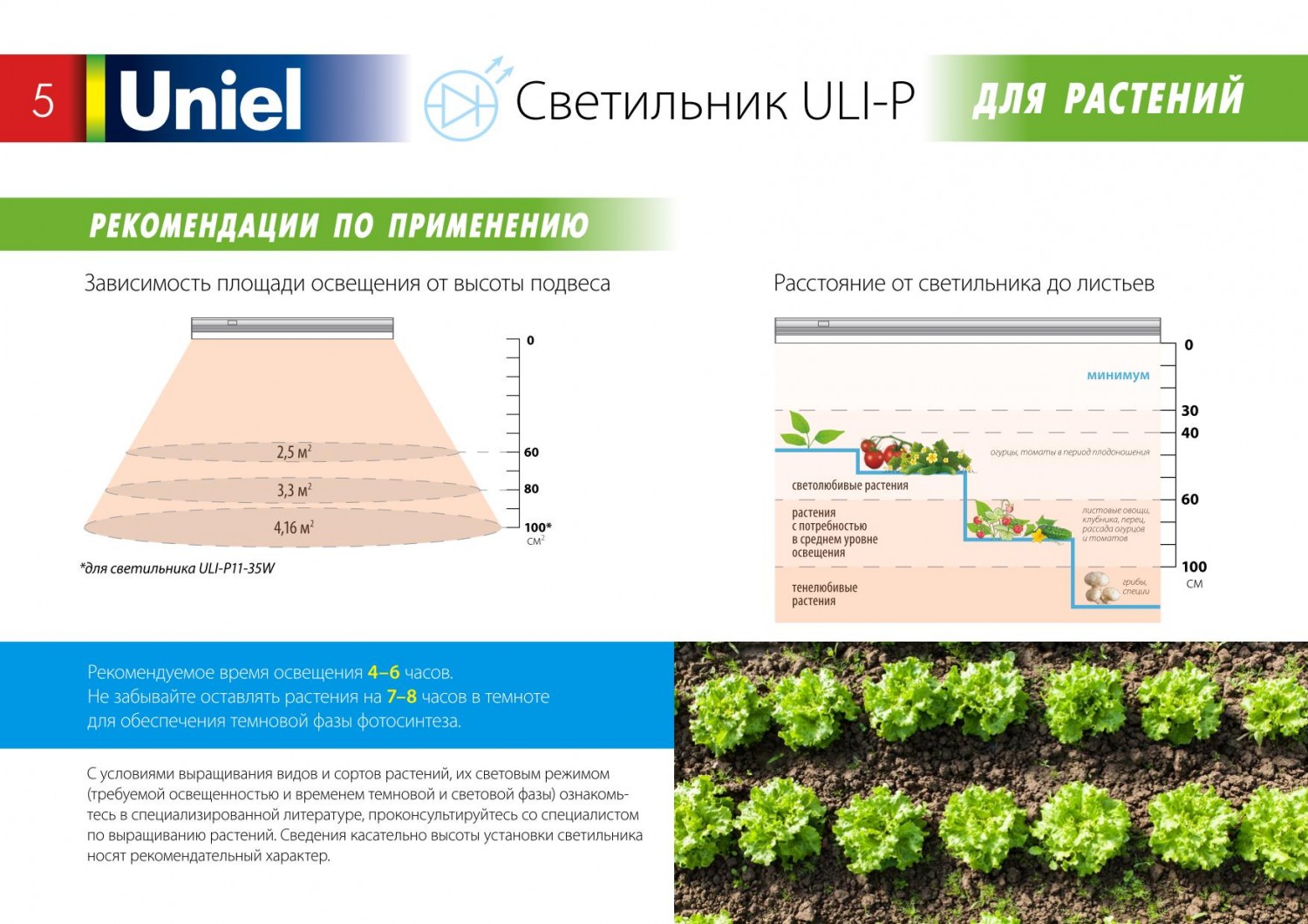 - Может использоваться для основного освещения растений