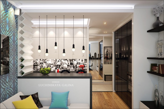 - хай-тек - здесь можно наблюдать полный полет фантазии, обычно, хаотично расположенные подвески, материал - абсолютно любой (дерево, стекло, металл, камень и т.п)