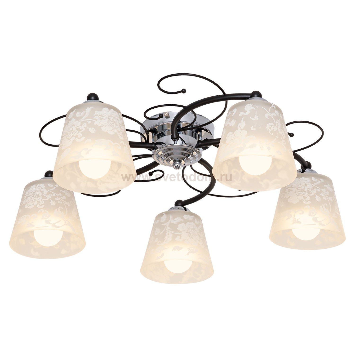 Потолочный светильник 008D/5CR+BK WT от бренда ЭкономСвет. Каркас выполнен из материала металл; цвета: хром и черный. Плафоны (светорассеиватели) выполнены из материала стекло, цвет белый. Цоколь E27 рассчитан на лампы максимальной мощности до 60 Вт, а максимальная площадь освещения составит до 11 м?.