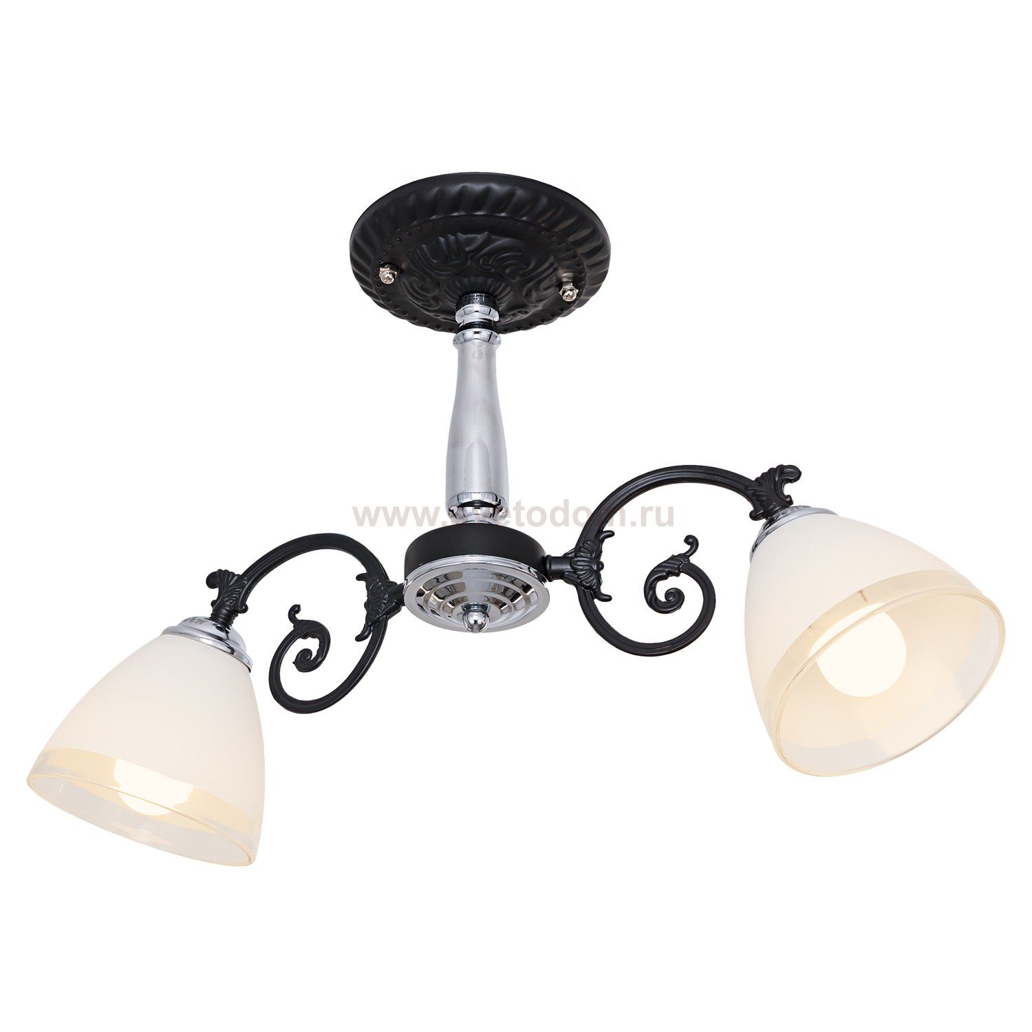 Потолочный светильник 020/2CR+BK WT от бренда ЭкономСвет. Каркас выполнен из материала металл; цвета: хром и черный. Плафоны (светорассеиватели) выполнены из материала стекло, цвет белый. Цоколь E27 рассчитан на лампы максимальной мощности до 60 Вт, а максимальная площадь освещения составит до 4 м?.