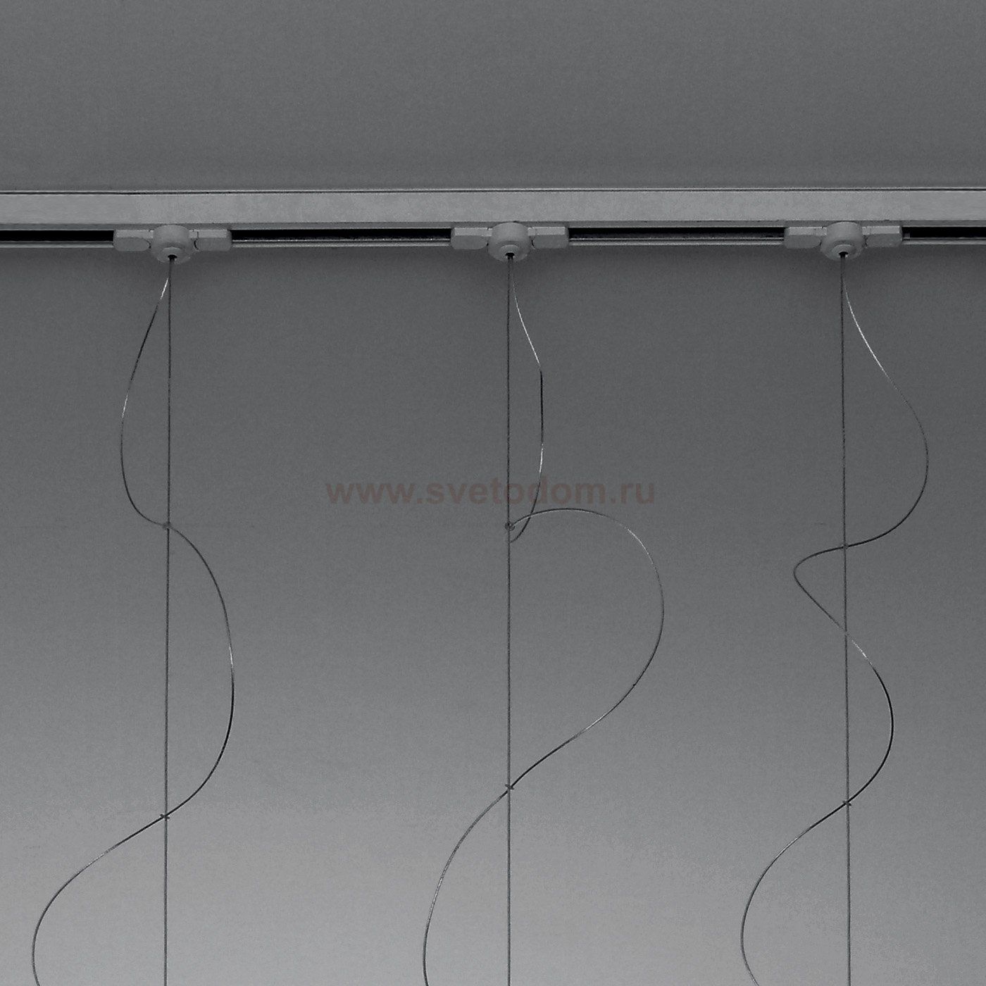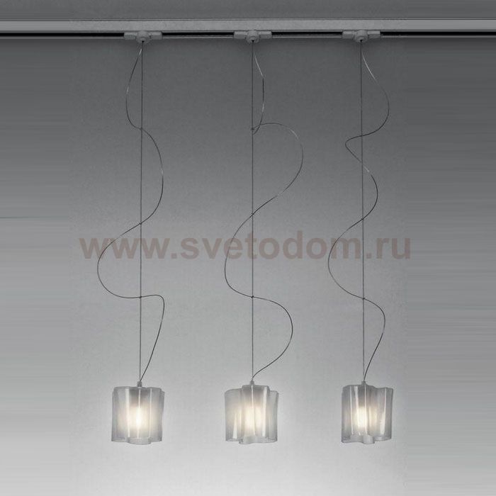 Подвесной светильник для трековых систем. Рассеиватель выполнен из муранского стекла бело-туманного цвета, максимальная высота регулирования тросом - 170 см. Поставляется в комплекте с адаптером для трехфазной трековой системы.