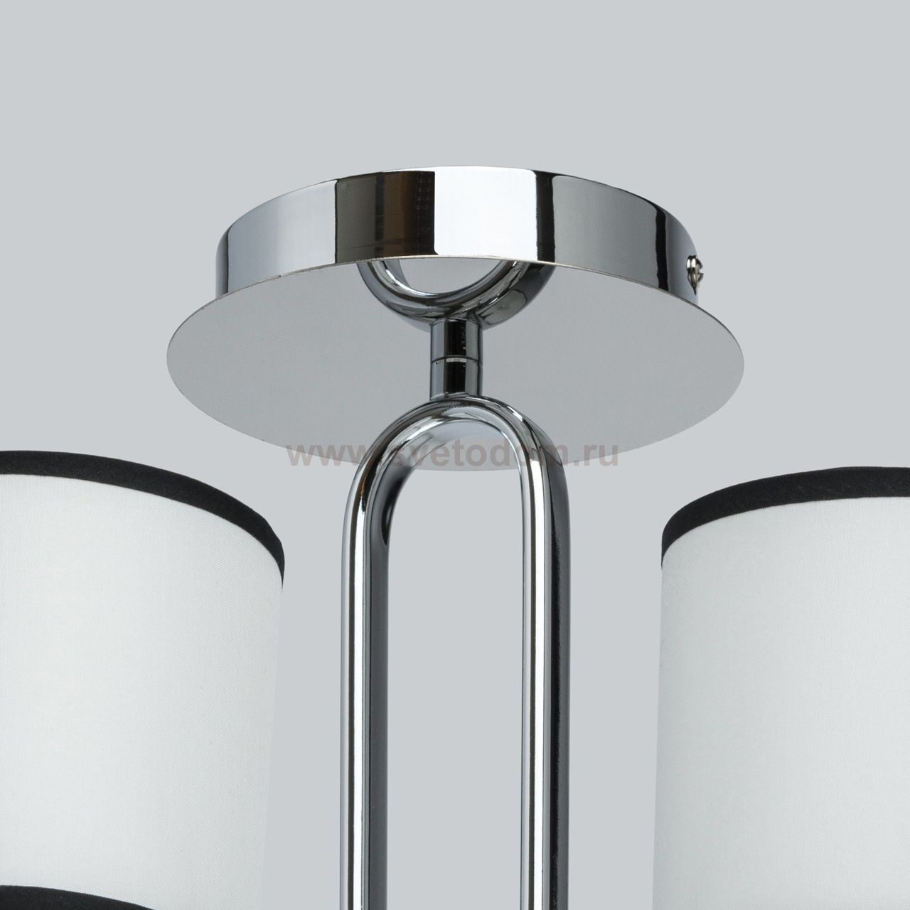 Элегантная люстра из коллекции «Прато» радует своей изящностью и оригинальным воплощением. Хромированное металлическое основание создает гармоничный дуэт с белыми абажурами необычной формы. Они украшены контрастным кантом чёрного оттенка, подчеркивающим утонченную строгость светильника. Завершающий штрих – декор из прозрачного акрила, придающий композиции особый шарм.