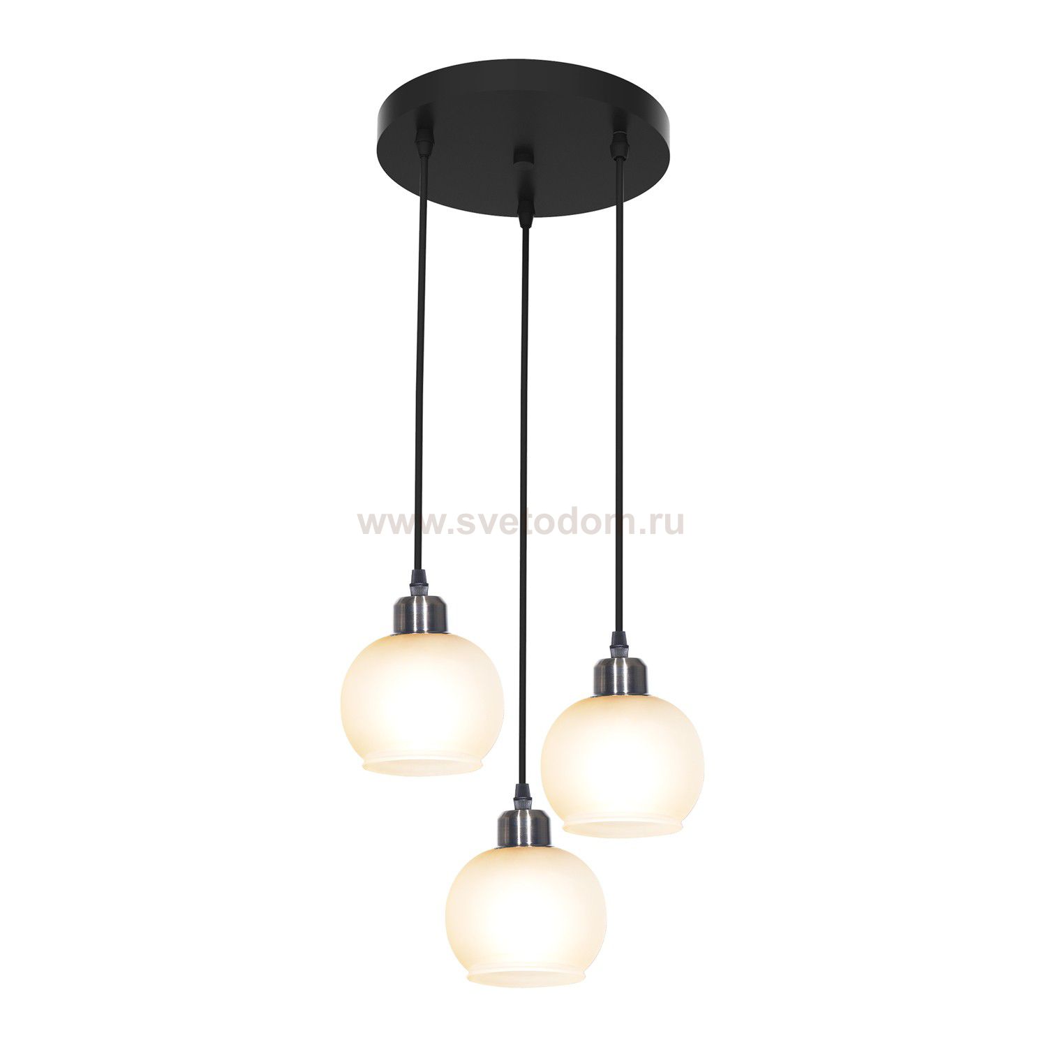 Подвесной светильник 10220/3BK WT от бренда ЭкономСвет. Каркас выполнен из материала металл, цвет черный. Плафоны (светорассеиватели) выполнены из материала стекло, цвет белый. Цоколь E27 рассчитан на лампы максимальной мощности до 40 Вт, а максимальная площадь освещения составит до 7 м?.