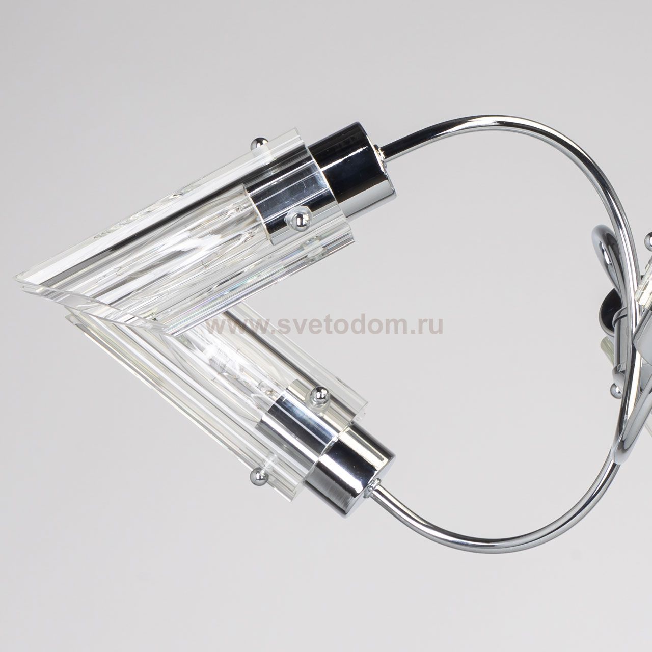 Хромированное металлическое основание гармонично дополнено стеклянными плафонами, направленными в разные стороны таким образом, чтобы освещение было максимально эффективно распределено.