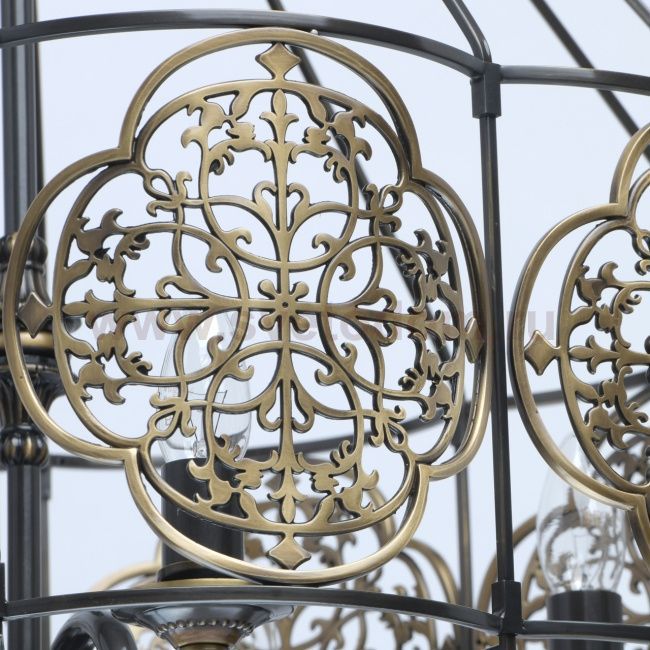 Светильник выполнен из латуни и обработан по технологии оксидирования (чернения) с последующей полировкой. Декор на плафоне и декоративные розетки выполнены по технологии художественного литья. Комментарий