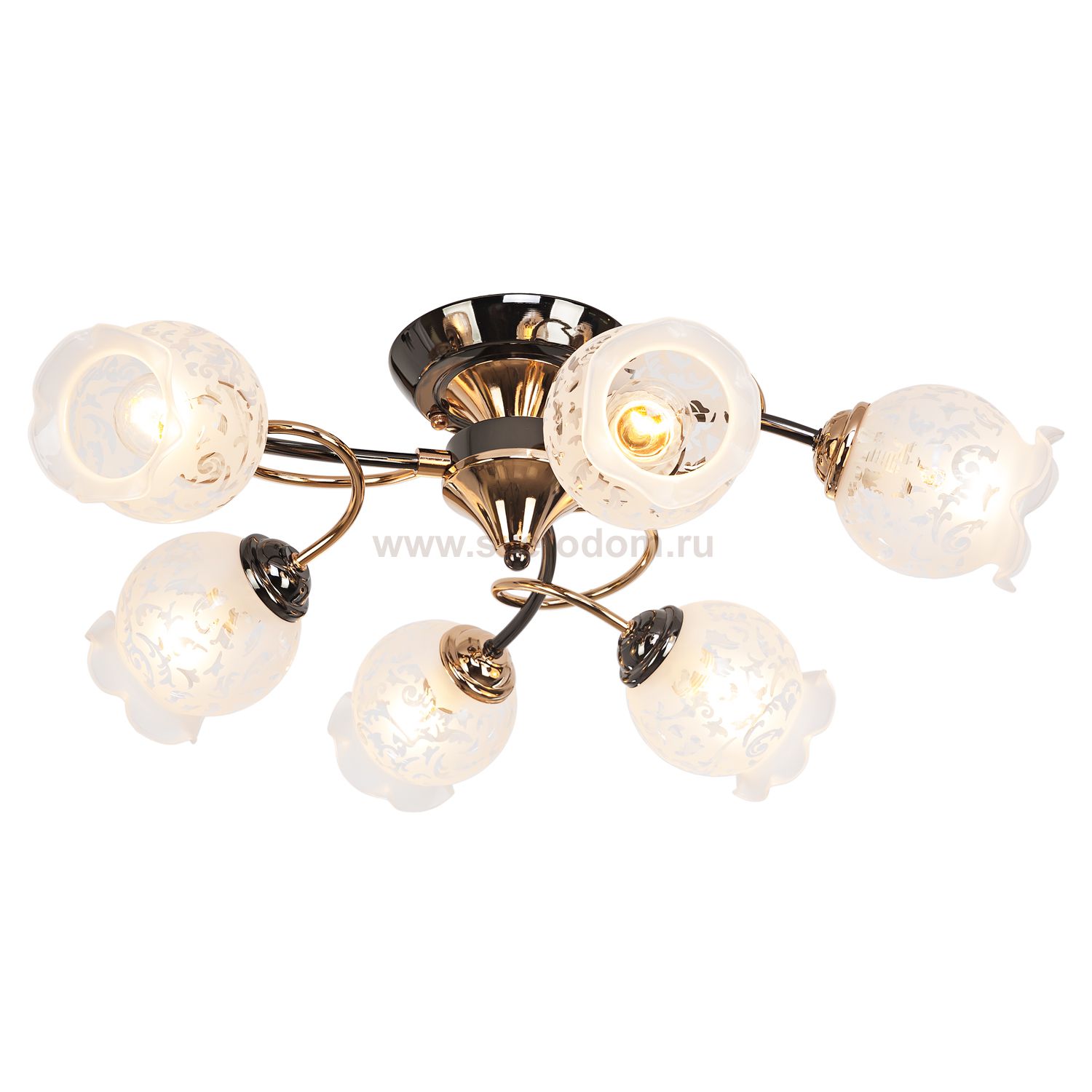 Люстра классическая 11055/6PB+FGD WT от бренда ЭкономСвет. Каркас выполнен из материала металл, цвет золото, черный. Плафоны (светорассеиватели) выполнены из материала стекло, цвет белый. Цоколь E27 рассчитан на лампы максимальной мощности до 60 Вт, а максимальная площадь освещения составит до 13 м?.