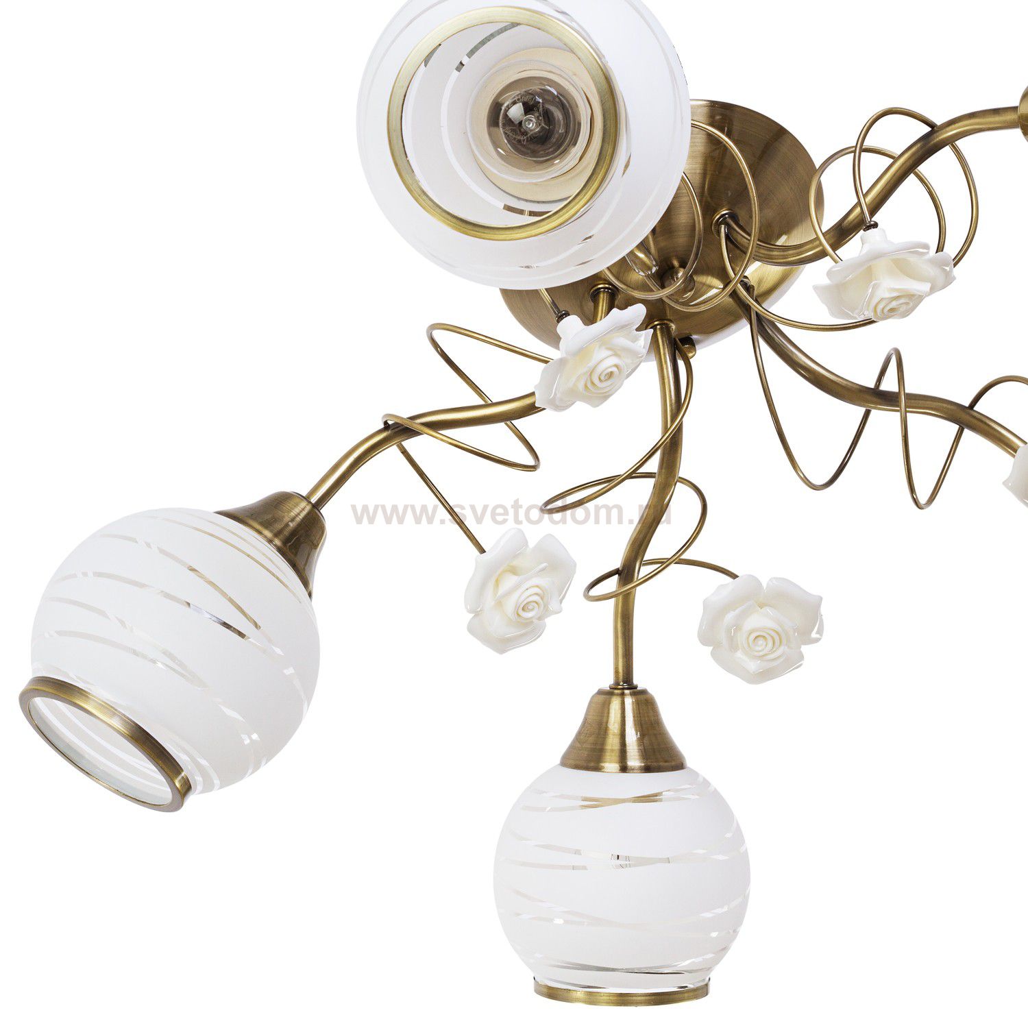 Люстра классическая 11538/5AB WT от бренда ЭкономСвет. Каркас выполнен из материала металл, цвет античная бронза. Плафоны (светорассеиватели) выполнены из материала стекло, цвет белый. Цоколь E27 рассчитан на лампы максимальной мощности до 60 Вт, а максимальная площадь освещения составит до 11 м?.