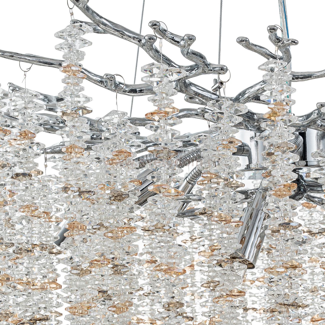 Серия FRUSCIO воплощает величественную симфонию природы. Изящно повторяя формы тонких веточек деревьев, эти светильники наполняют пространство своей неподдельной природной красотой. Нежное сияние, истекающее от кроны хрустальных листьев, мелодичный шелест, словно шепот ветра, - все это наполняет каждое мгновение пленительной серенадой света и песней природы. Эти светильники станут мостом между вашим интерьером и природой, даря вам возможность ощутить ее ласку и красоту прямо внутри вашего дома. Размер 600*600*425/1400 Мощность G9 8xMAX 33W Цвет ХРОМ/ПРОЗРАЧНЫЙ/ЯНТАРНЫЙ Материал МЕТАЛЛ/ХРУСТАЛЬ |