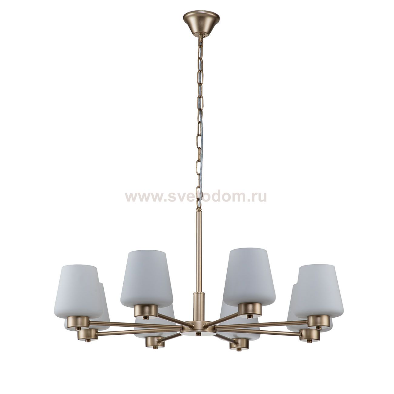 Прекрасное всегда стоит рука об руку с восхищающим и чем-то простым. Так и серия светильников Tulip не нуждается в сложных отягощающих деталях. Лаконичность исполнения, в виде стеклянных белых плафонов и металлических линий высветленного золота, придает аристократический образ неповторимому и элегантному стилю, не нуждающемуся в представлении. Размер 815*815*455/1255 Мощность E27 60Wх8 Цвет ЗОЛОТО/МАТОВЫЙ Материал МЕТАЛЛ/СТЕКЛО
