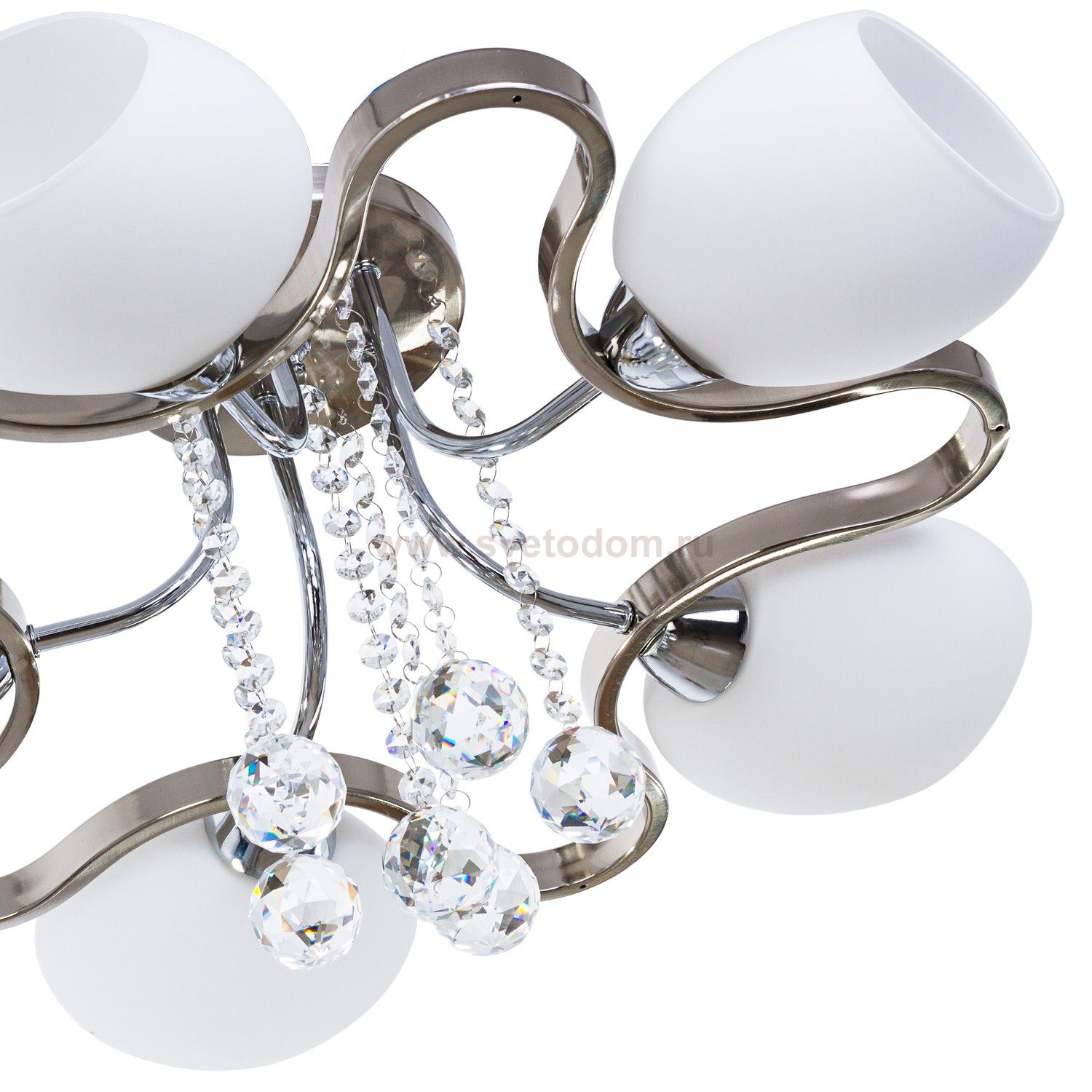 Люстра классическая с хрусталем 15401/5SN WT от бренда ЭкономСвет. Каркас выполнен из материала металл, цвет серебро. Плафоны (светорассеиватели) выполнены из материала стекло, цвет белый. Цоколь E14 рассчитан на лампы максимальной мощности до 60 Вт, а максимальная площадь освещения составит до 11 м?.