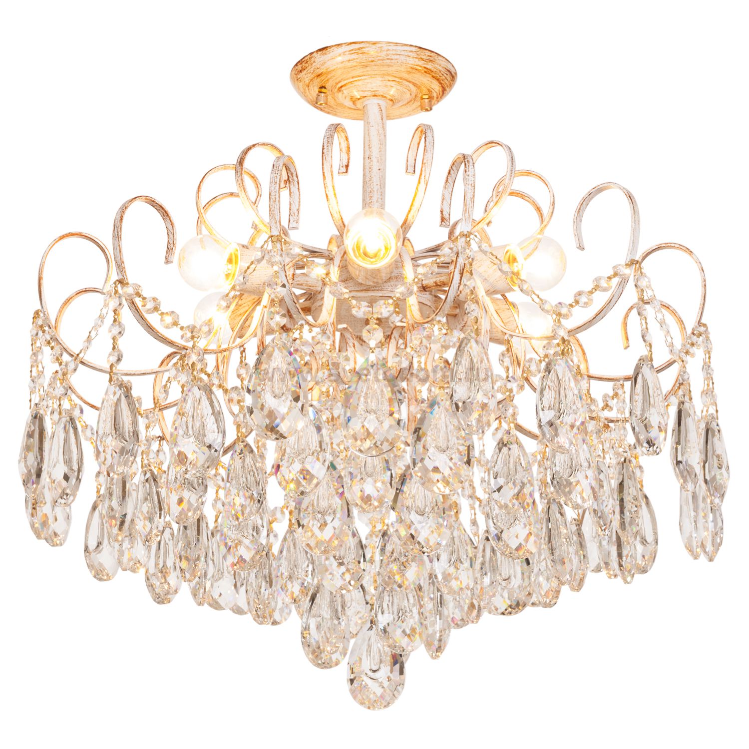 Люстра с хрусталем 15512/6WT+GD WT от бренда ЭкономСвет. Каркас выполнен из материала металл, цвет античный белый. Цоколь E27 рассчитан на лампы максимальной мощности до 60 Вт, а максимальная площадь освещения составит до 13 м?.