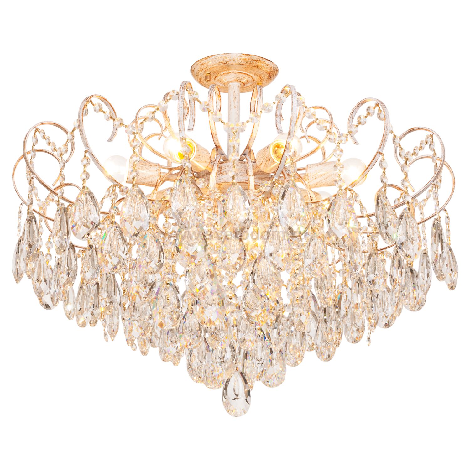 Люстра с хрусталем 15512/8WT+GD WT от бренда ЭкономСвет. Каркас выполнен из материала металл, цвет античный белый. Цоколь E27 рассчитан на лампы максимальной мощности до 60 Вт, а максимальная площадь освещения составит до 18 м?.