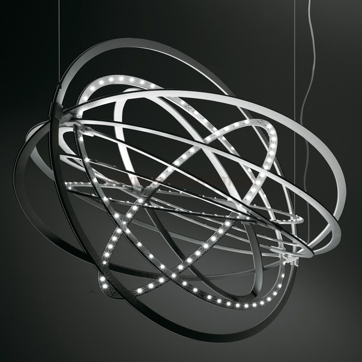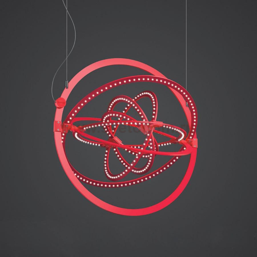 Подвесной светильник со встроенными светодиодными источниками. Возможные варианты цветов: черный, серый, красный. Внешний вид светильника: конструкция из алюминиевых кругов, каждый из которых подвижен, что позволяет получать лазличные формы.