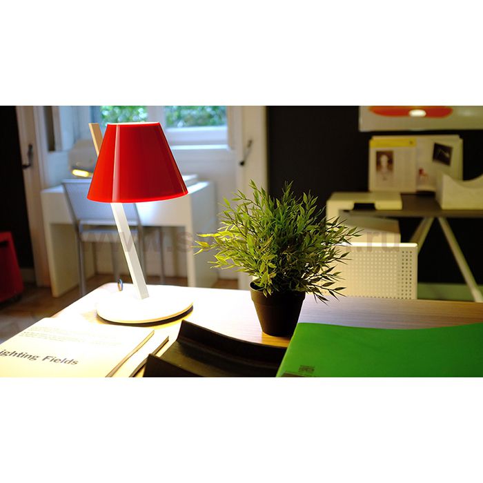 Настольная лампа коллекции La Petite выполнена в стиле модерн, где пластиковый абажур словно балансирует на наклонном алюминиевом основании, имея минимальную поддержку, что создает некий противовес наклоненной базы и объемного абажура. Цвет бело-красный. Простые элементы изысканно объединенные в удивительную геометрическую композицию передают навыки Artemide. Легкие формы абажура производят приятный мягкий прямой и косвенный свет. Лампа выглядит просто, но вместе с тем очень элегантно и прекрасно подойдет для оформления и освещения гостиной, спальни, а также отеля, офиса. |