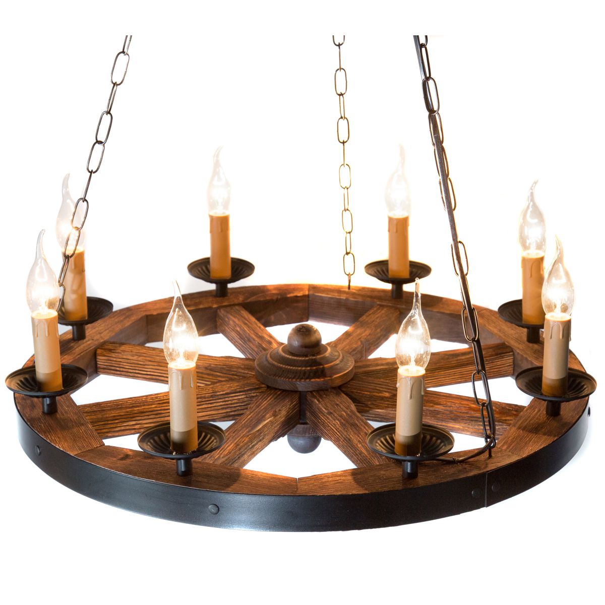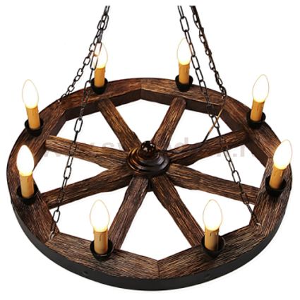 Уникальная люстра в виде колеса от телеги с 8 лампами произведенная в России подойдет как для бани, бара, ресторана или другой обстановки приближенной к деревенскому стилю - рустике. Оптимальная цена на текущий момент этого светильника не имеет аналогов в России. |