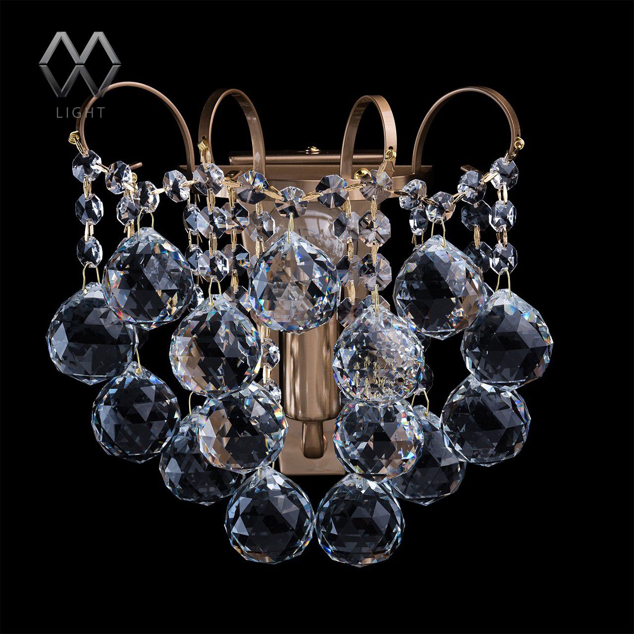 Филигранная техника выполнения бра из коллекции Жемчуг порадует любителей роскоши и блеска в интерьере. Металлическое основание цвета медовой бронзы в сочетании с хрустальными гроздьями делают светильник подлинным ювелирным украшением, наполняя обстановку сказочным мерцанием. Рекомендуемая площадь освещения - 3 кв.м.