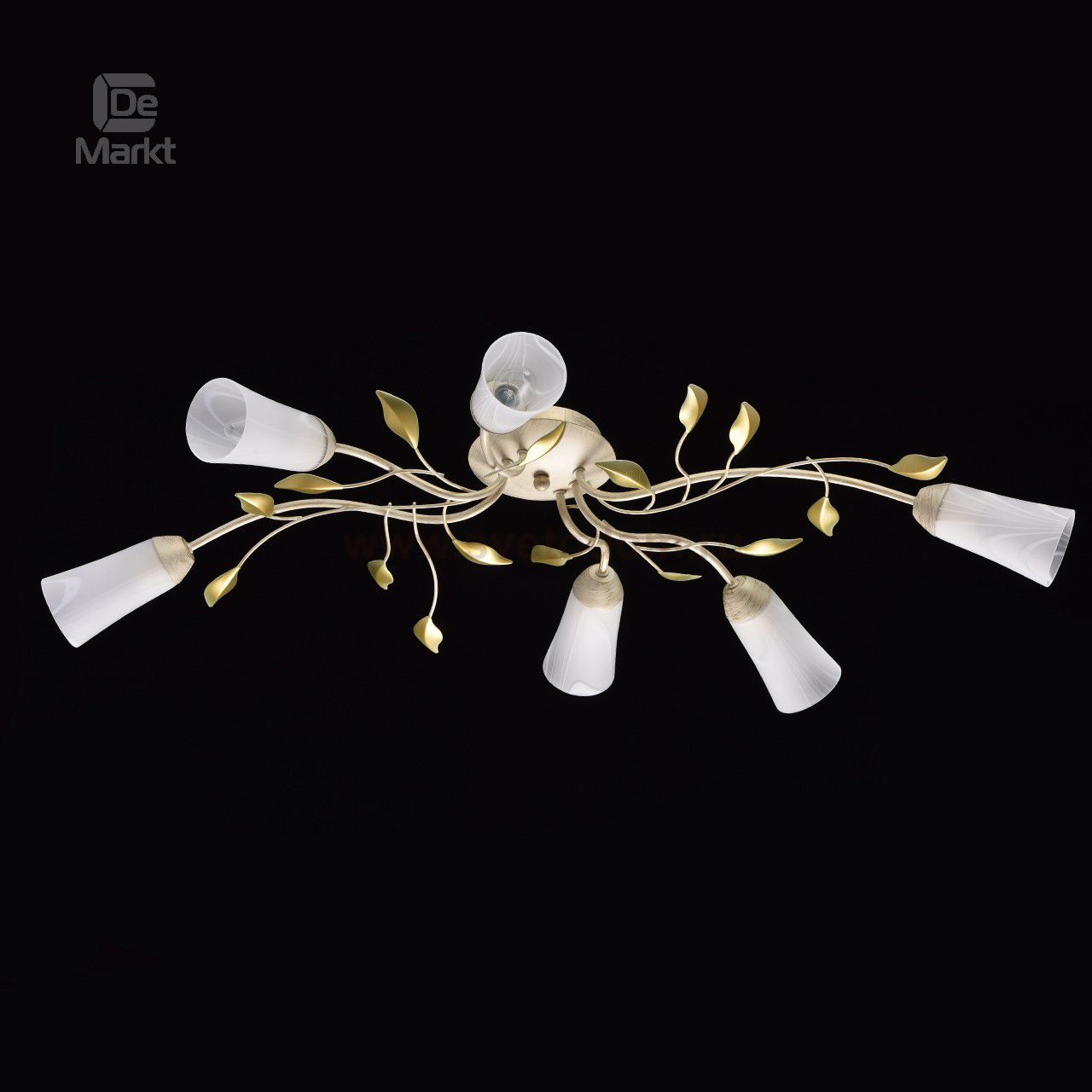Эта люстра из коллекции «Восторг» напоминает чудесный вьющийся цветок. Нераскрытые бутоны-плафоны, выполненные из матового стекла с плавными мягкими разводами, держатся на стеблях-рожках. Их окутывают нежные золотисто-зеленого цвета листья. Цветовую гамму дополняет кремовый оттенок металлического основания. Люстра наполнит обстановку легкостью и свежестью. Рекомендуемая площадь освещения порядка 30 кв.м.
