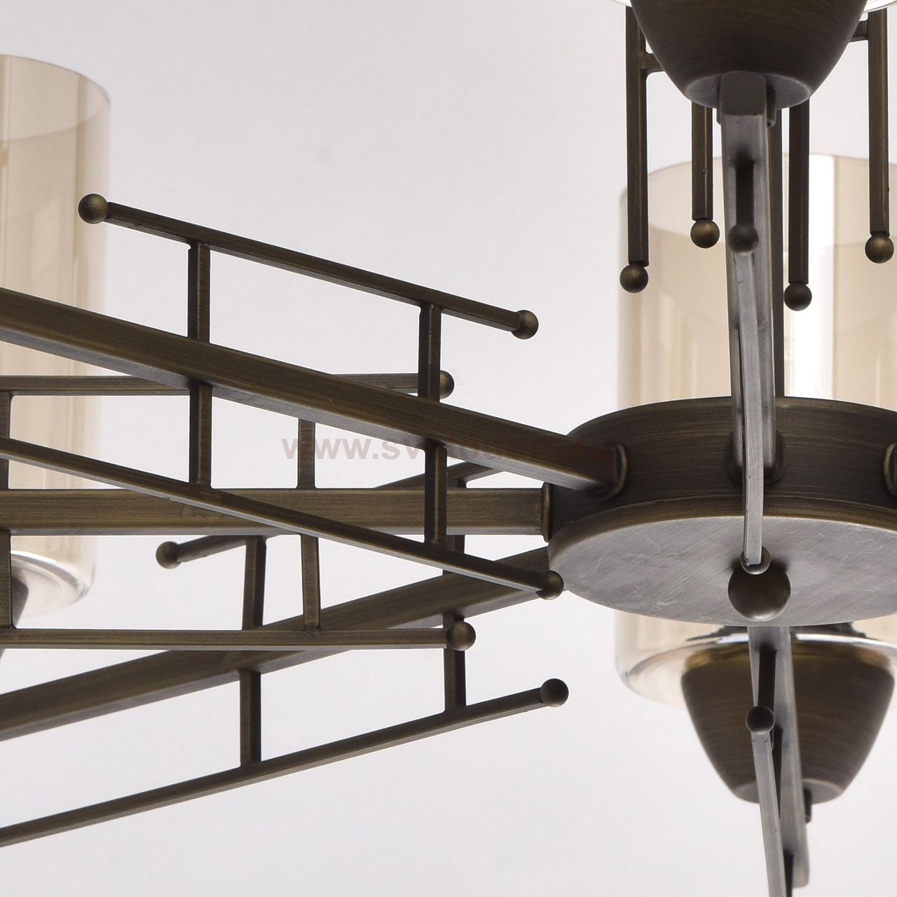 Арматура: облегченная сталь, окрашивание в цвет патинированной бронзы.Плафоны: стекло цвета шампань. Материал плафона