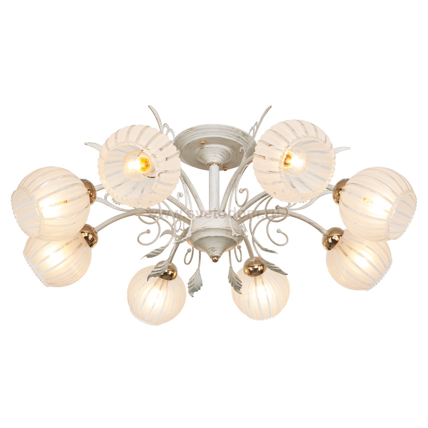 Люстра классическая 2500/8WG+FG от бренда ЭкономСвет. Каркас выполнен из материала металл; цвета: античный белый и золото. Плафоны (светорассеиватели) выполнены из материала стекло, цвет белый. Цоколь E14 рассчитан на лампы максимальной мощности до 60 Вт, а максимальная площадь освещения составит до 18 м?.