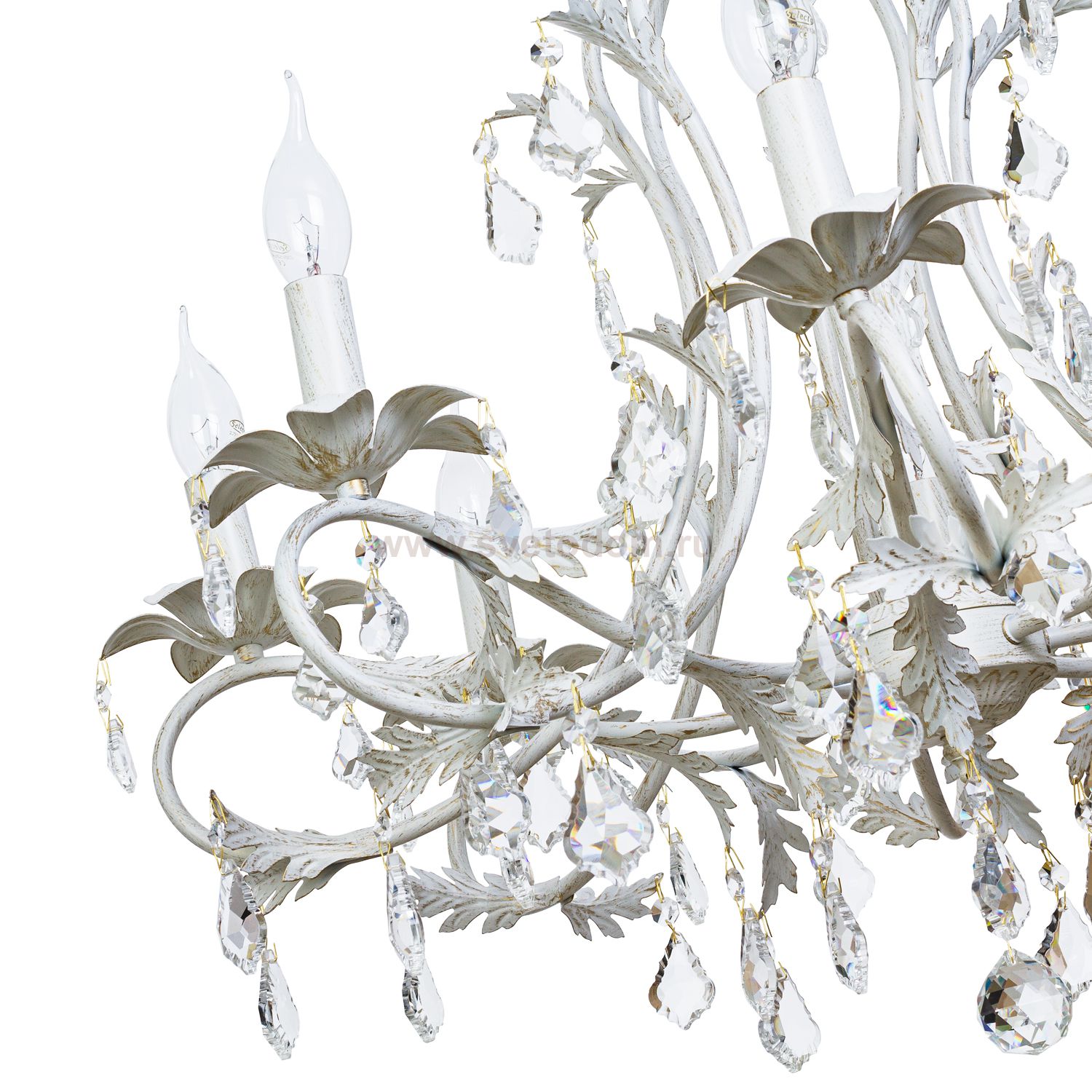 Люстра классическая с хрусталем 2510/8WG от бренда ЭкономСвет. Каркас выполнен из материала металл, цвет античный белый. Цоколь E14 рассчитан на лампы максимальной мощности до 60 Вт, а максимальная площадь освещения составит до 11 м?.