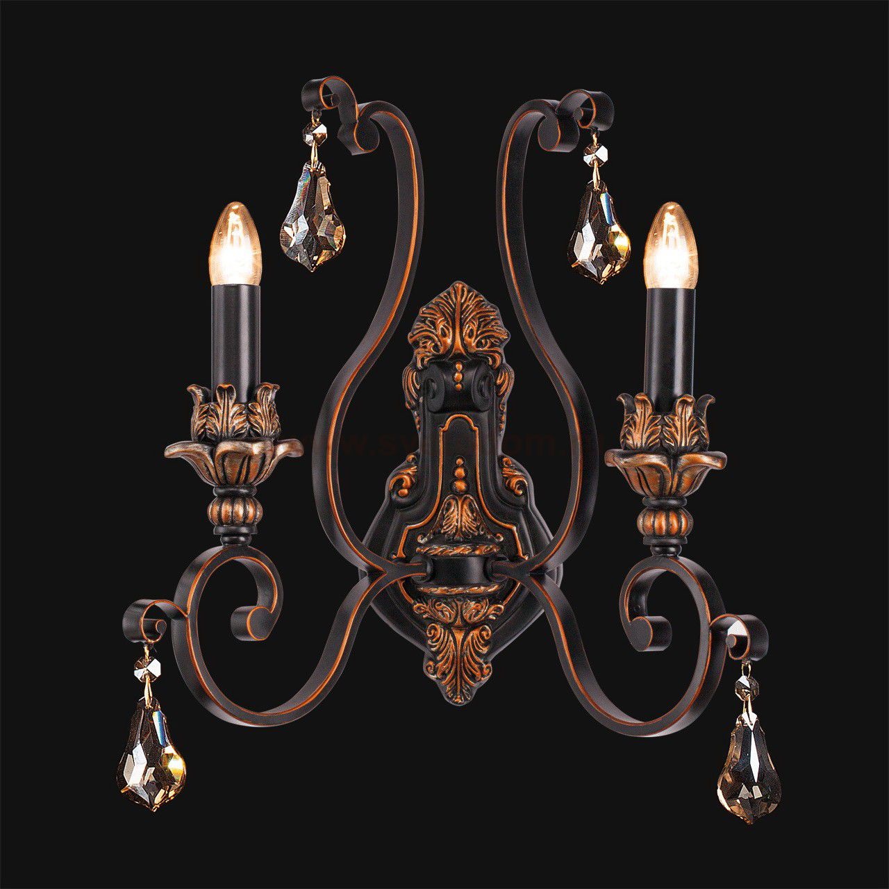 Основание из металла и искусственного каучука цвета темного кофе, декоративные элементы из хрусталя цвета «Шампань» Материал плафона