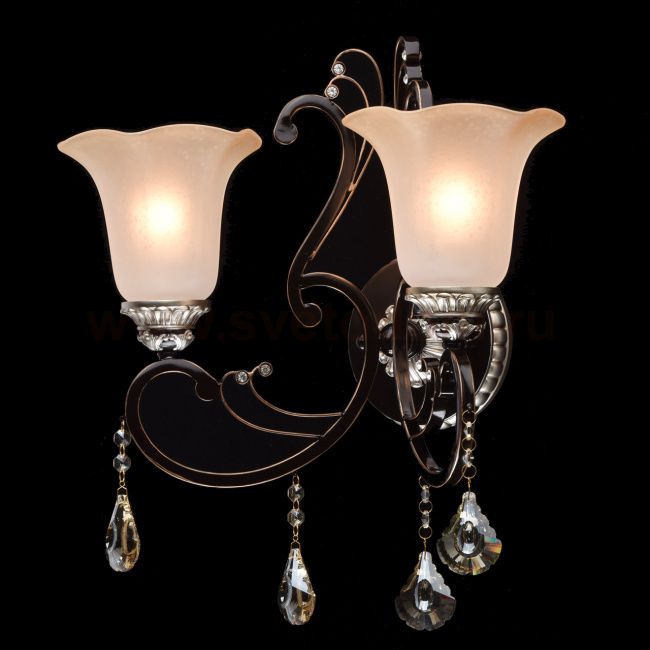 Основание из металла и искусственного каучука цвета темного кофе и золота, декоративные элементы из хрусталя цвета «Шампань», хрустальные стразы Материал плафона