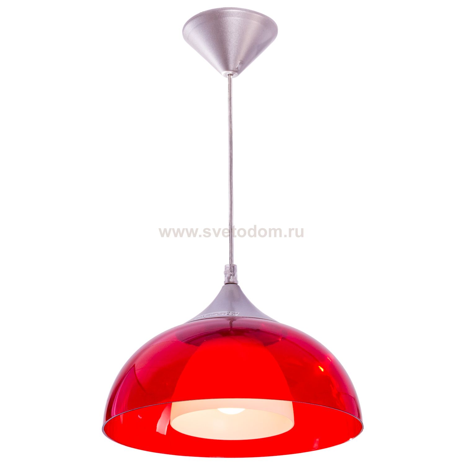 Подвесной светильник 254P/1 RED от бренда ЭкономСвет. Каркас выполнен из материала металл, цвет хром. Плафон (светорассеиватель) выполнен из материалов пластик и стекло; цвета: белый и красный. Цоколь E27 рассчитан на лампы максимальной мощности до 40 Вт, а максимальная площадь освещения составит до 2 м?.