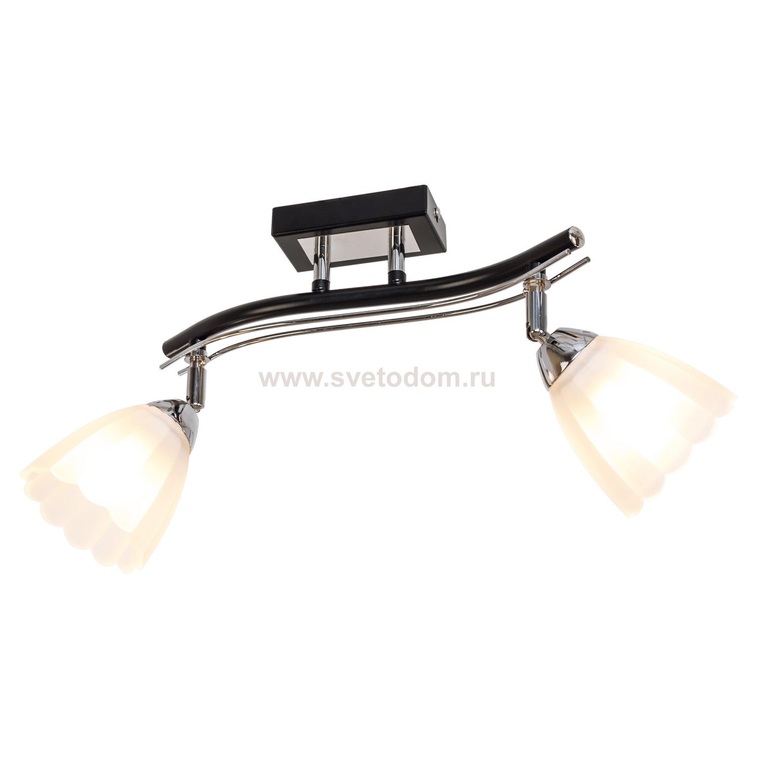 Потолочный светильник 26592/2BK CR от бренда ЭкономСвет. Каркас выполнен из материала металл, цвет хром, черный. Плафоны (светорассеиватели) выполнены из материала стекло, цвет белый. Цоколь E27 рассчитан на лампы максимальной мощности до 60 Вт, а максимальная площадь освещения составит до 4 м?. |