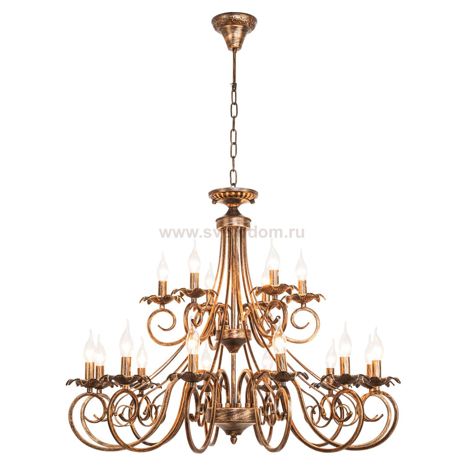 Люстра классическая 2828/18BG от бренда ЭкономСвет. Каркас выполнен из материала металл; цвета: коричневый и золото. Цоколь E14 рассчитан на лампы максимальной мощности до 40 Вт, а максимальная площадь освещения составит до 40 м?.