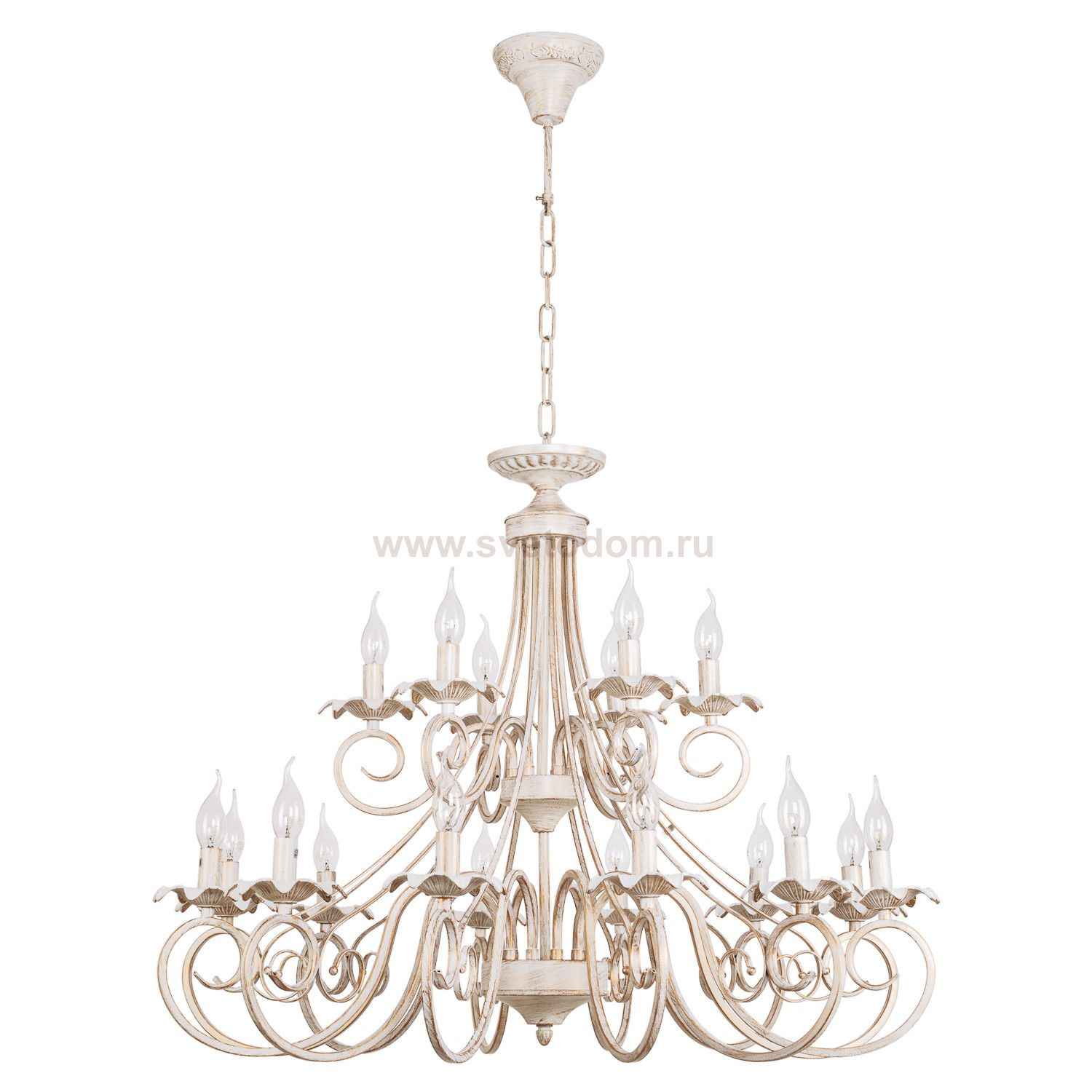 Люстра классическая 2828/18WG от бренда ЭкономСвет. Каркас выполнен из материала металл; цвета: белый и золото. Цоколь E14 рассчитан на лампы максимальной мощности до 40 Вт, а максимальная площадь освещения составит до 40 м?.