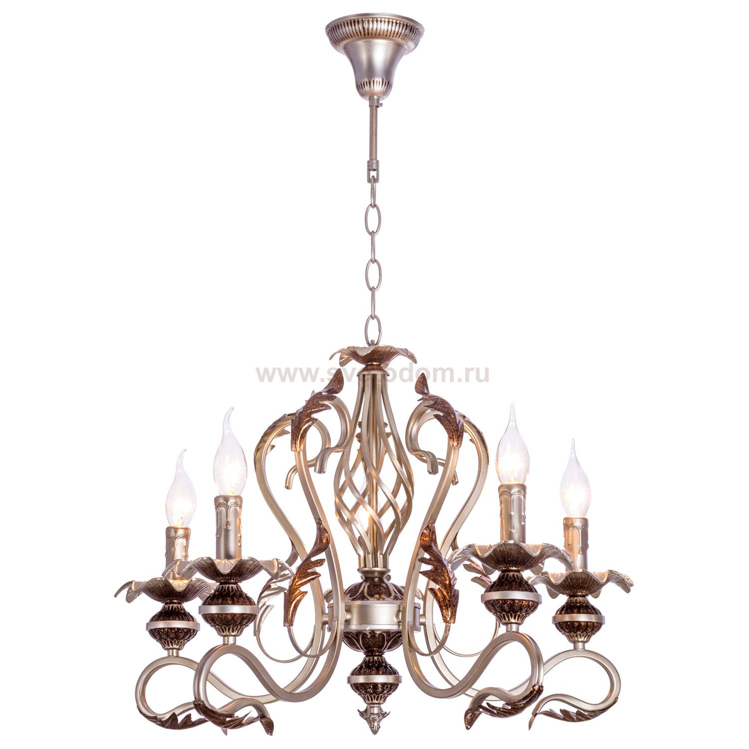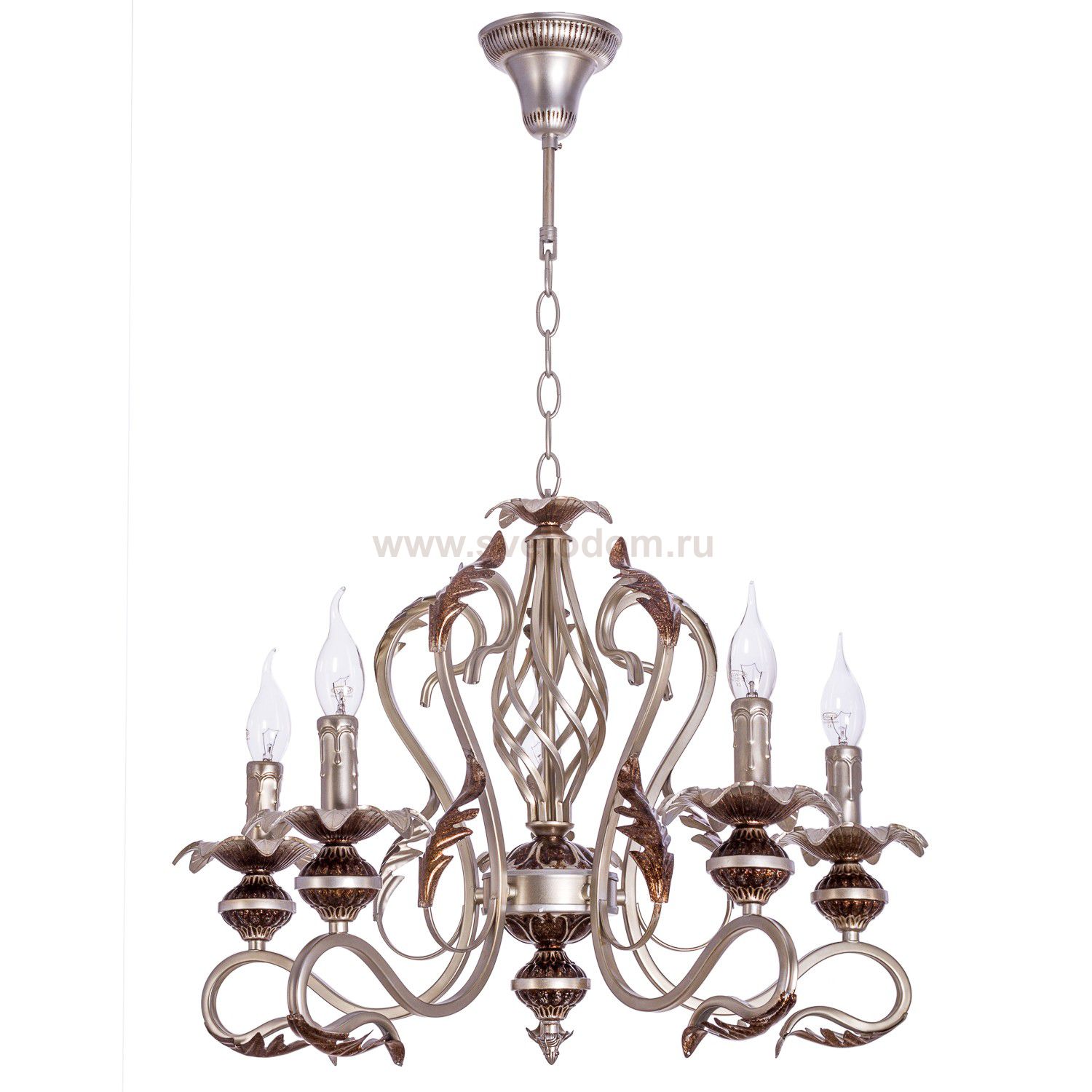 Люстра классическая 2831/5ASA от бренда ЭкономСвет. Каркас выполнен из материала металл; цвета: бронза и серебро. Цоколь E14 рассчитан на лампы максимальной мощности до 40 Вт, а максимальная площадь освещения составит до 11 м?.