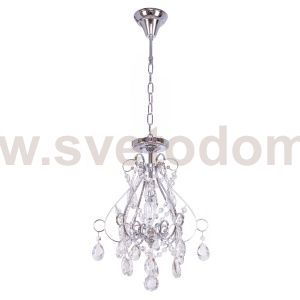 Люстра с хрусталем 2848/1CR WT от бренда ЭкономСвет. Каркас выполнен из материала металл, цвет хром. Цоколь E14 рассчитан на лампы максимальной мощности до 40 Вт, а максимальная площадь освещения составит до 2 м?.