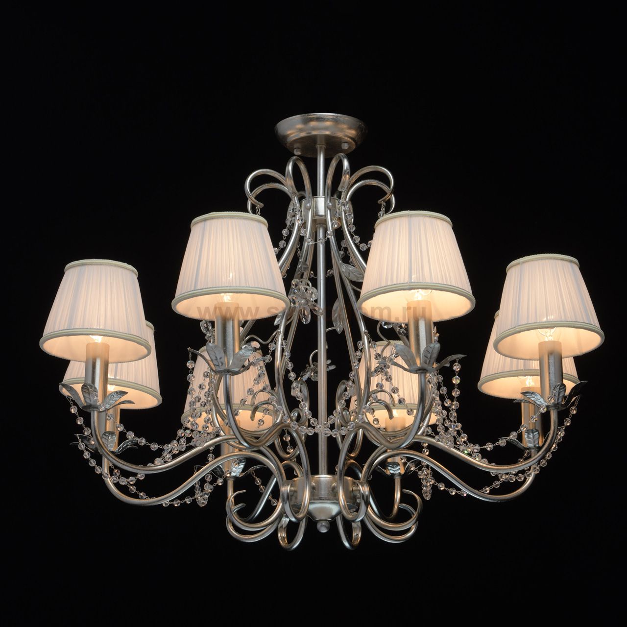 Изящная люстра из коллекции «Валенсия» восхищает своей неповторимой грацией и красотой. Металлическое основание представлено в двух цветовых вариациях: цвета золота и серебряного оттенка с эффектом патинирования. Под стать величественному изгибу рожка и розеткам в флористическом духе – элегантные тканевые абажуры. Они также представлены в двух цветовых решениях: классического белого оттенка и абажуры-хамелеоны. Завершают роскошную композицию декоративные бусы из прозрачного хрусталя и витые элементы из металла в тон основания.