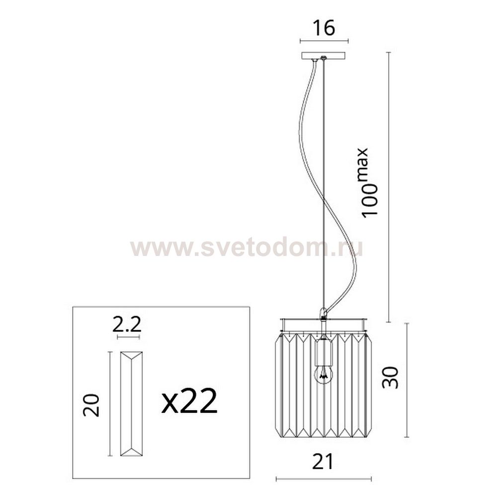 Характеризует подвесную систему светильника. Данную длину возможно изменять: дополнять или сокращать в пределах указанных данных.