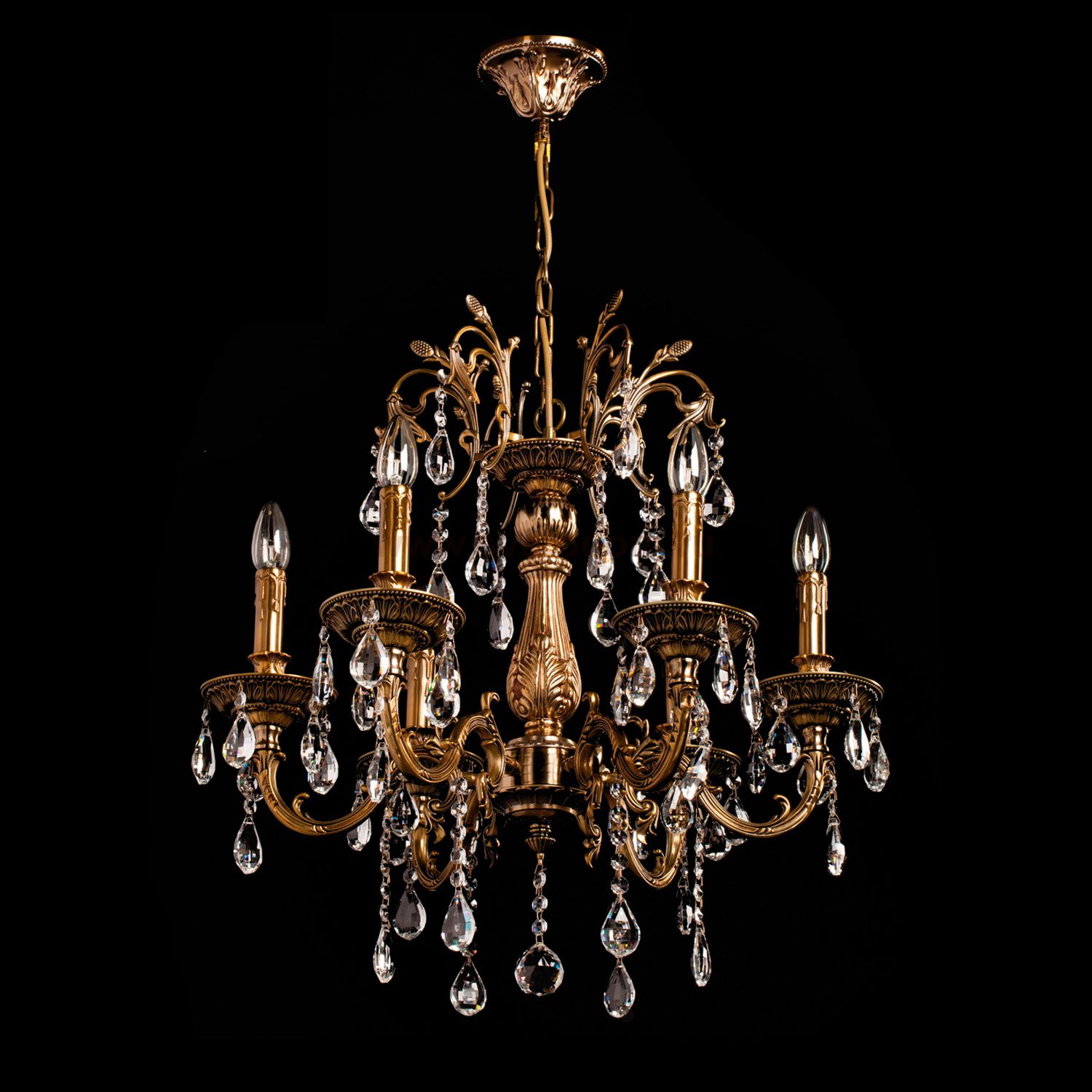 Арматура светильника выполнена из комбинации сплавов металлов и гальванизирована в цвет золотистой бронзы. Рожки и центральная часть выполнены по технологии художественного литья. Светильник декорирован подвесками из хрусталя сложной огранки. Комментарий