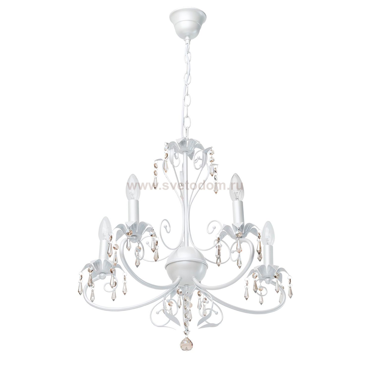 Крашеное металлическое основание жемчужно- белого цвета, декоративные элементы из гальванизированного хрусталя Материал плафона