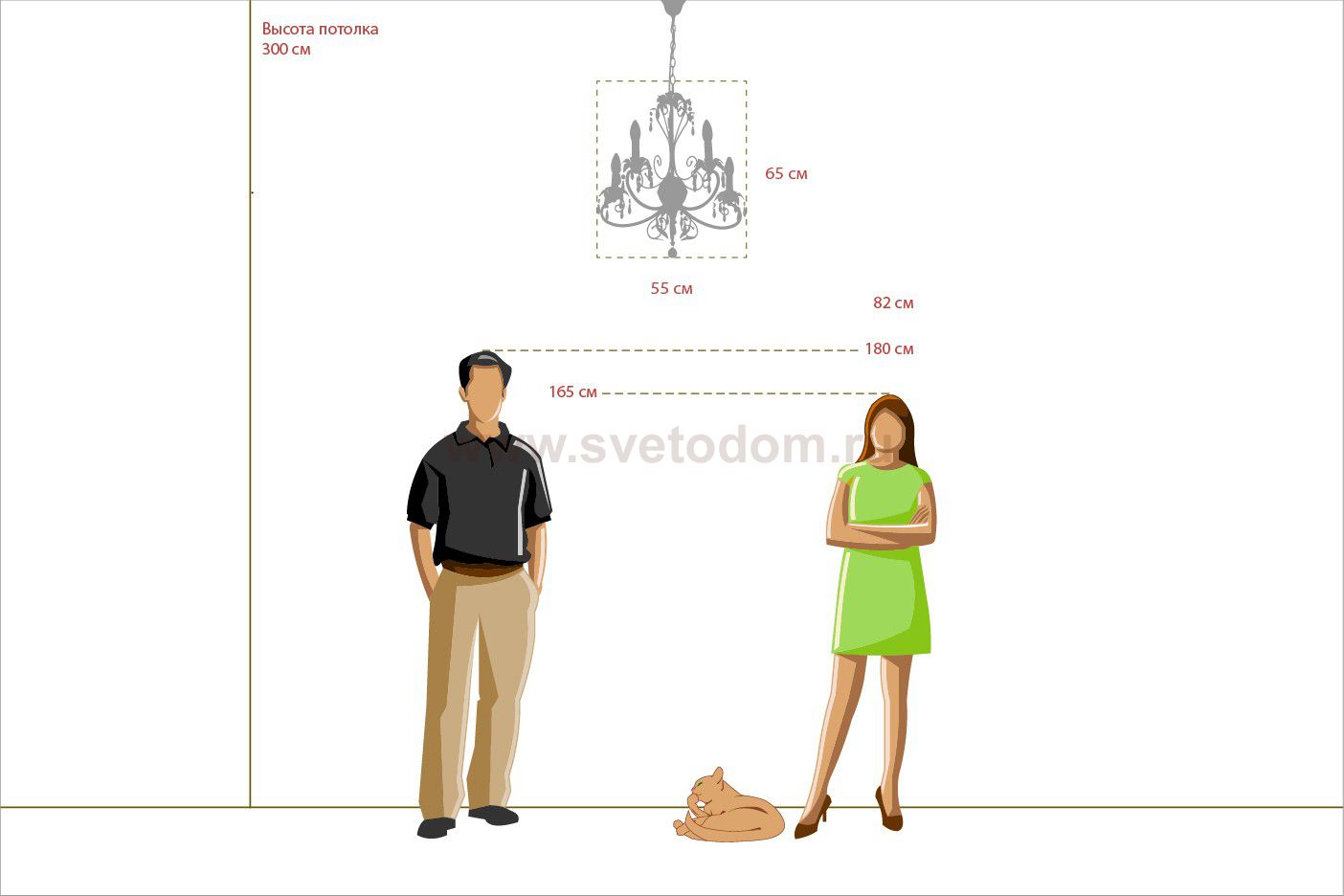 Описание модели 301017105: Люстры и бра из коллекции «Свеча» подчеркнут светлый классический интерьер. Металлическая арматура, выполненная в форме тонких стеблей и лепестков, окрашена в жемчужно-белый цвет. Лампы в виде свеч декорированы изящными каплевидными подвесками из гальванизированного хрусталя. Светильники создают торжественную атмосферу в помещении и визуально расширяют пространство.