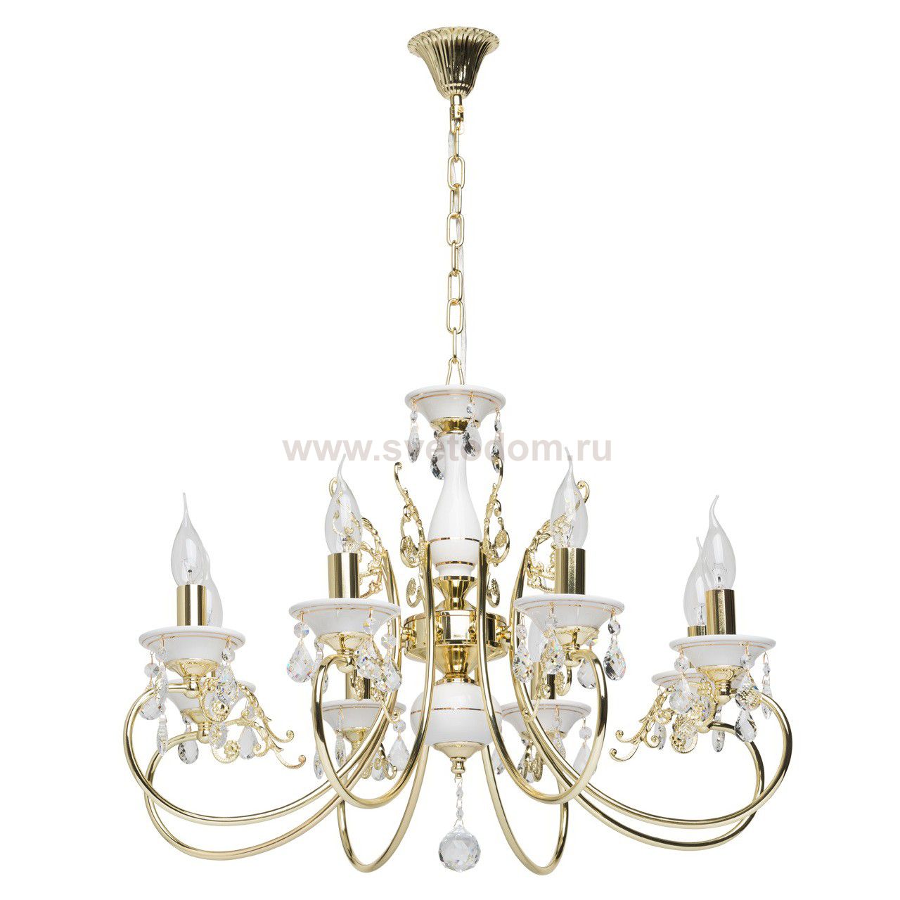 Описание модели 301018208: Люстра из коллекции Свеча привлекает необыкновенной комбинацией – сочетанием золотого и белоснежного декора. Металлическое основание цвета самородного золота сделает убранство комнаты пышным и богатым, а декоративные чаши из керамики молочно-белого цвета придадут спокойствие и свежесть. Живописные элементы из хрусталя завершают ансамбль. Люстра, сияющая во всем великолепии, станет настоящим украшением интерьера. Рекомендуемая площадь освещения порядка 18 кв.м.