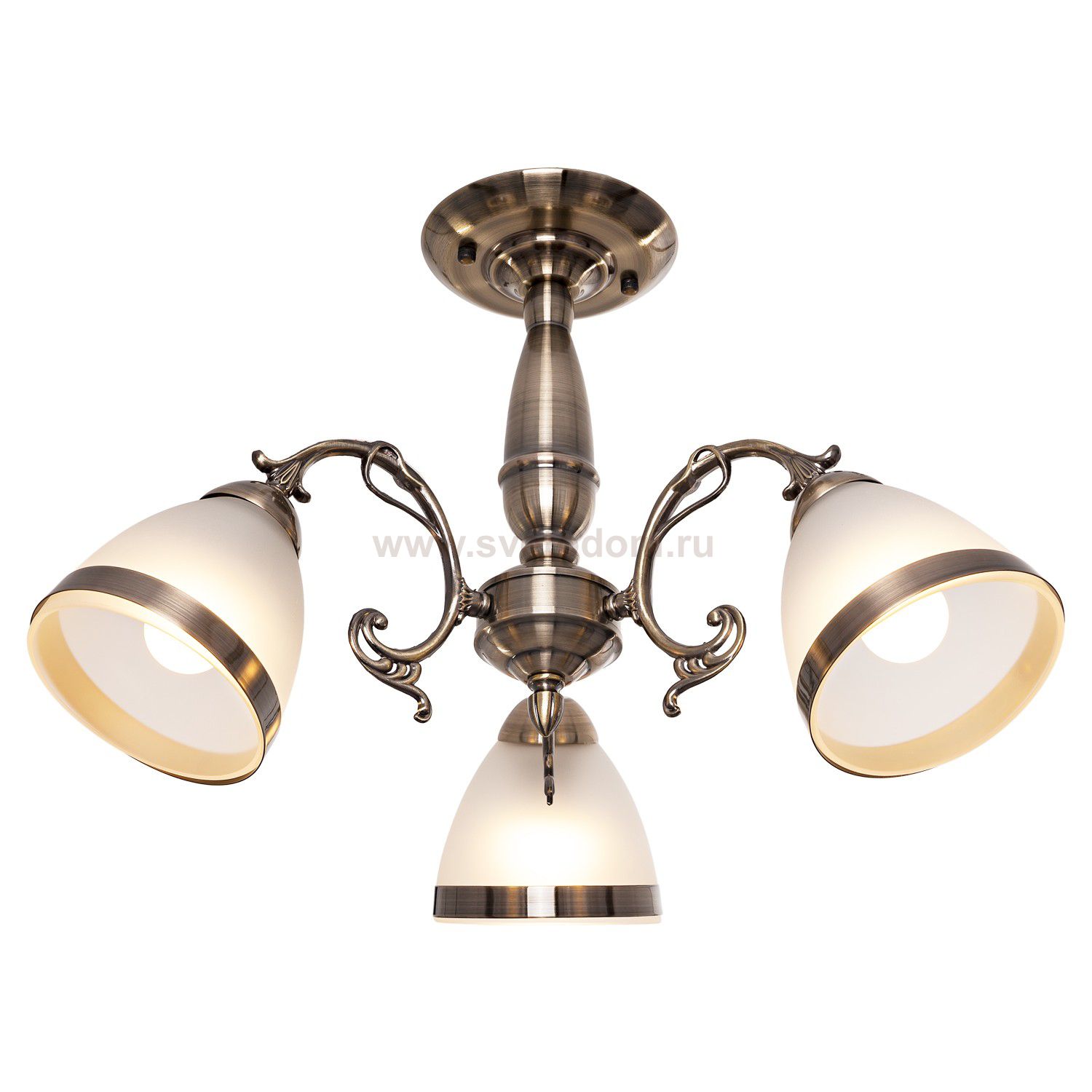 Люстра классическая 30280/3AB WT от бренда ЭкономСвет. Каркас выполнен из материала металл, цвет античная бронза. Плафоны (светорассеиватели) выполнены из материала стекло; цвета: белый и античная бронза. Цоколь E27 рассчитан на лампы максимальной мощности до 40 Вт, а максимальная площадь освещения составит до 7 м?.