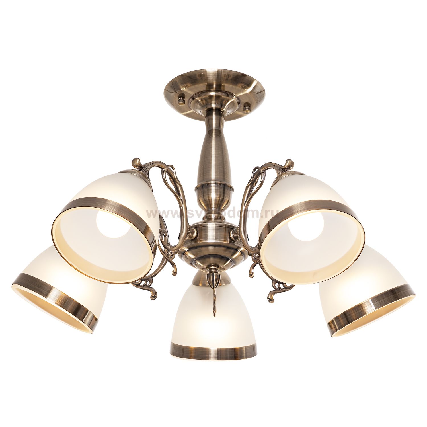 Люстра классическая 30280/5AB WT от бренда ЭкономСвет. Каркас выполнен из материала металл, цвет античная бронза. Плафоны (светорассеиватели) выполнены из материала стекло; цвета: белый и античная бронза. Цоколь E27 рассчитан на лампы максимальной мощности до 40 Вт, а максимальная площадь освещения составит до 11 м?.