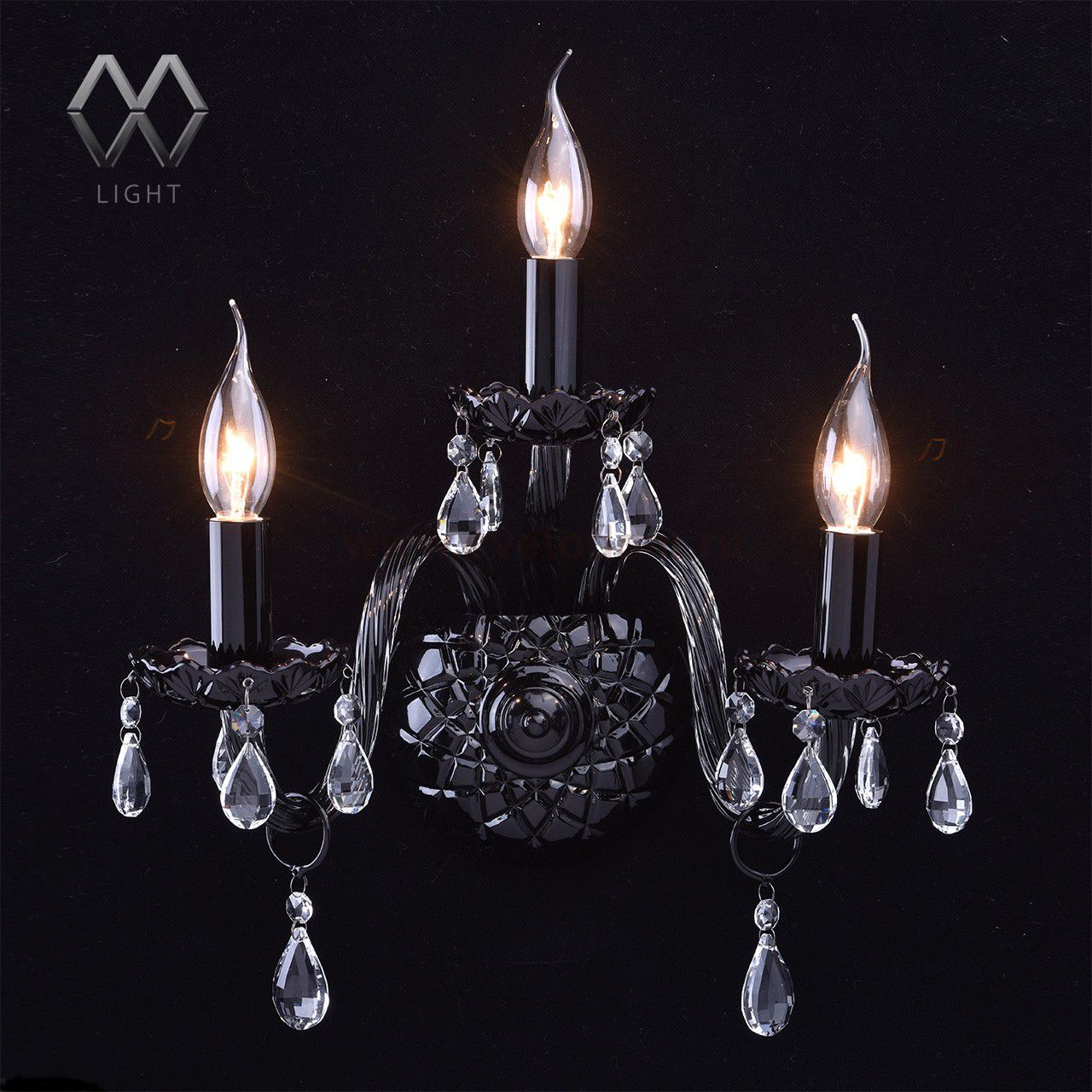 Арматура выполнена из сплава металла и декорирована стеклом, окрашенным в массе в глянцевый черный цвет. Рожки выполнены из витого стекла гутным способом и окрашены изнутри. Светильник декорирован подвесками из хрусталя высокой категории. Комментарий