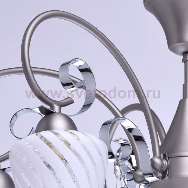 Описание модели 315012306: Люстра из коллекции «Блеск» сможет удачно дополнить обстановку. Светильник привлекает сдержанным, продуманным дизайном, спокойными оттенками. Основание из матового металла цвета сатинового никеля прекрасно гармонирует с декоративными завитками из глянцевого металла цвета хрома. Элегантное цветовое решение подчеркивают плафоны из комбинированного белого матового и прозрачного стекла, они привлекают внимание строгим, практически геометрическим дизайном. Помимо этого, светильник декорирован хрустальными элементами оригинальной огранки и формы. Площадь освещения порядка 24 кв.м.