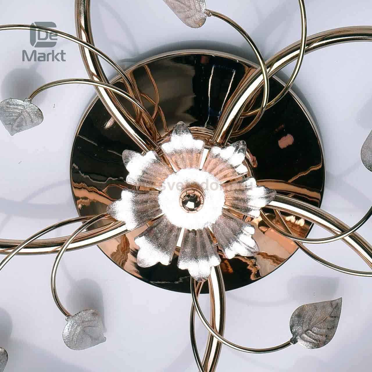 Описание модели 319015005: Люстра из коллекции «Лето» легкая и гармоничная. Металлическое основание цвета французского золота удачно сочетается с рельефными стеклянными плафонами жемчужно-белого оттенка. Декоративные элементы в растительном стиле придают светильнику свежесть и элегантность. Он идеально подойдет для стандартных потолков. Площадь освещения порядка 15 кв.м.