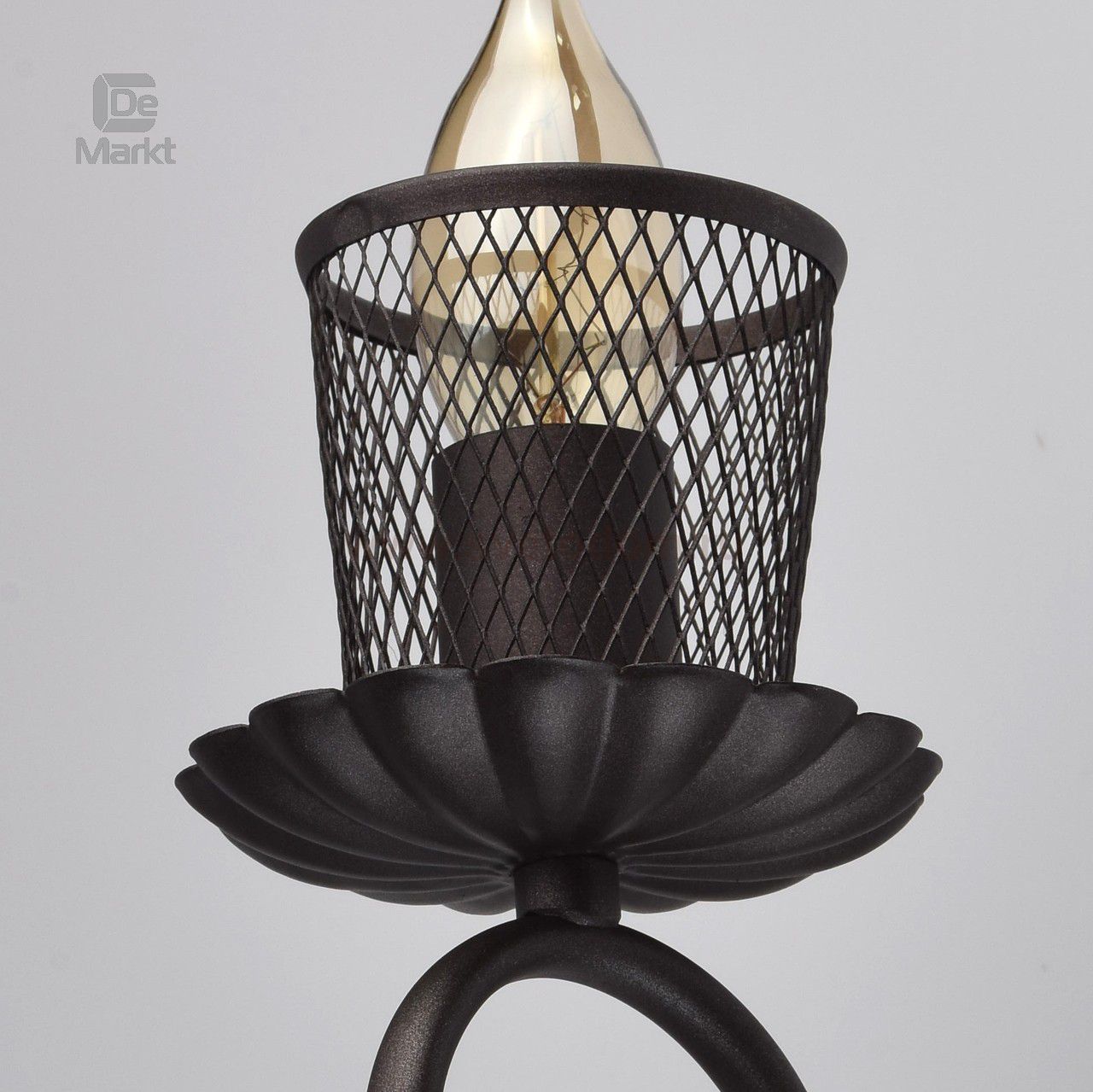 323025701 - это Необычная люстра из коллекции "Аида" сочетает в себе готическую романтичность и классическую красоту. Она выполнена в стиле легкой ковки. Матовое металлическое основание насыщенного кофейного оттенка гармонично сочетается с оригинально расположенными рожками и фигурами розетками. В качестве источников света выступают свечи, каждую из которых окутывает плафон из метализированной сетки. Особый шарм светильнику придают подвесы из хрустального стекла цвета шампань. |