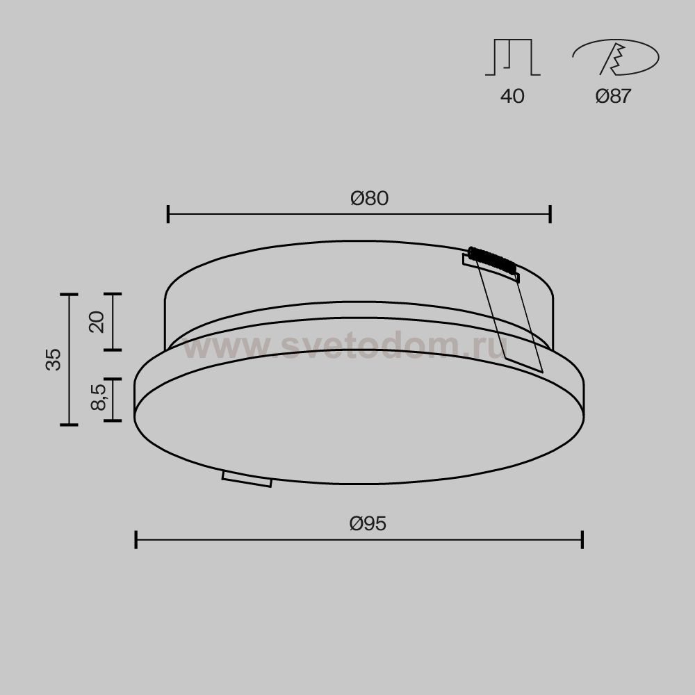 Данный размер указывает какое отверстие необходимо сделать для правильного монтажа. Зачастую светильники выбирают после ремонта и сделанных монтажных отверстий, тогда подбор осуществляется строго в размер +/- 2-5мм.