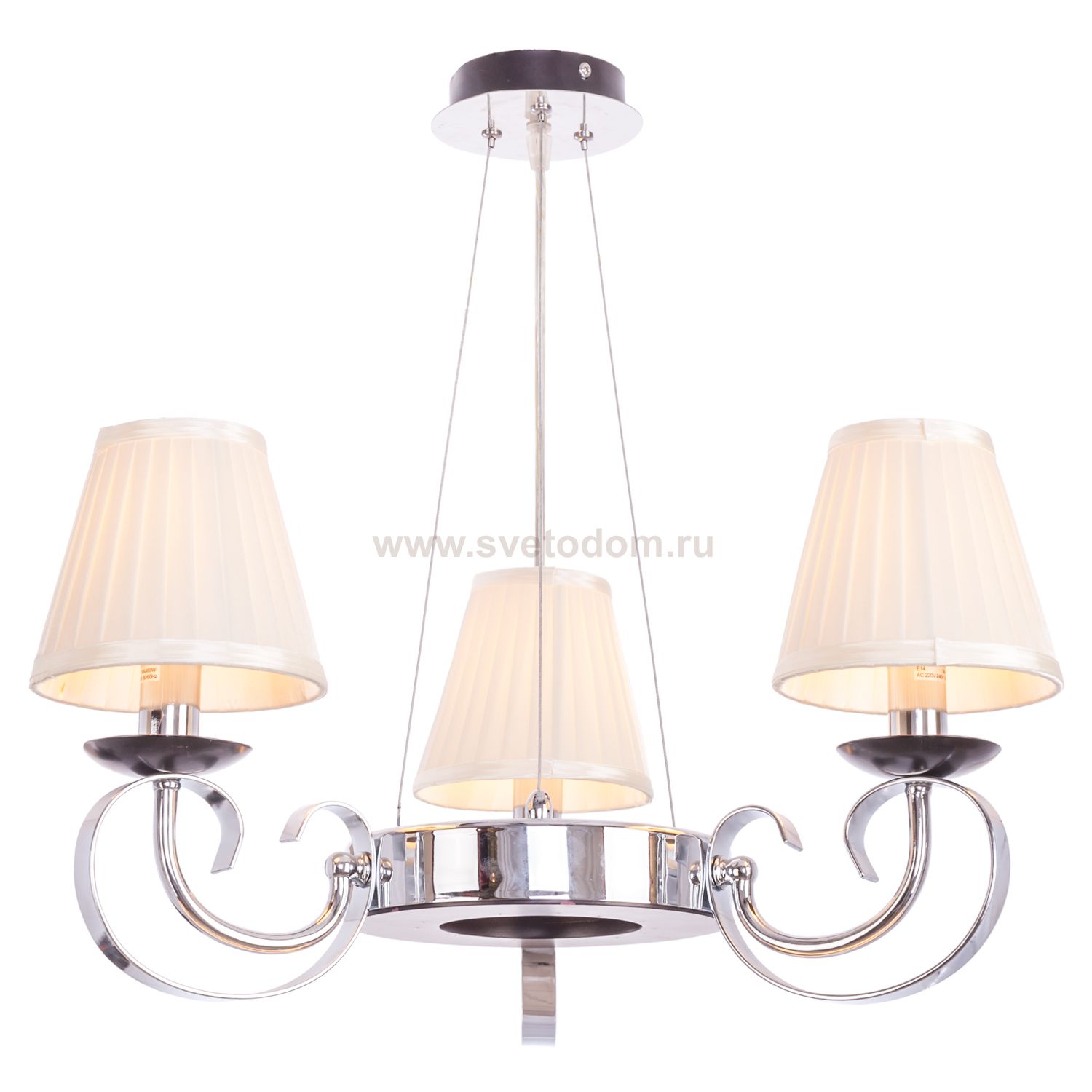 Люстра классическая 32420/3CR WD RWT от бренда ЭкономСвет. Каркас выполнен из материала металл, цвет хром. Плафоны (светорассеиватели) выполнены из материала текстиль, цвет белый. Цоколь E14 рассчитан на лампы максимальной мощности до 60 Вт, а максимальная площадь освещения составит до 7 м?.