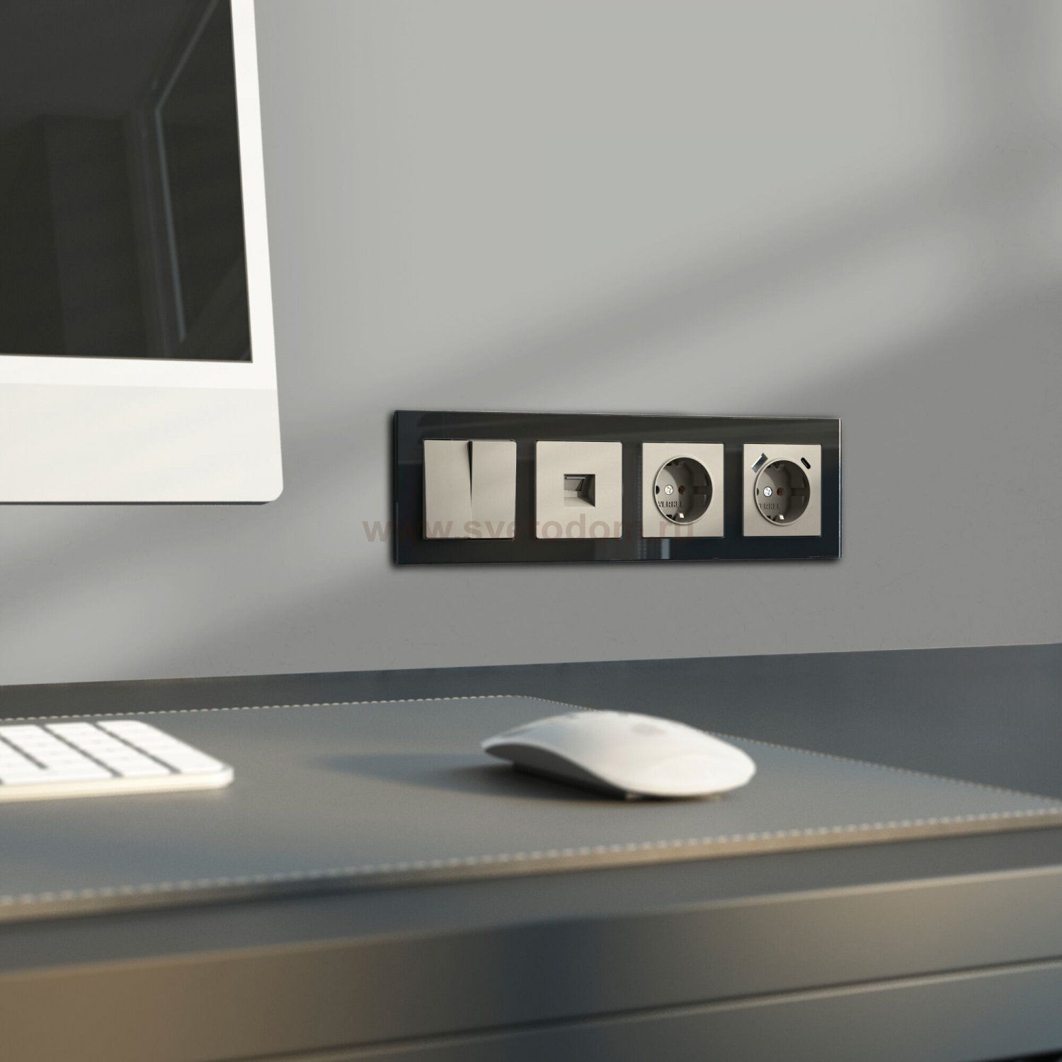 Механизм двухклавишного выключателя оснащен матовой лицевой панелью. Матовая поверхность – это современный тренд, задающий стиль вашему интерьеру. Она не бликует, обладает бархатистой фактурой и тактильной мягкостью. Дымчатый цвет будет эффектно смотреться в любом интерьерном пространстве и гармонично сочетаться с любыми материалами.