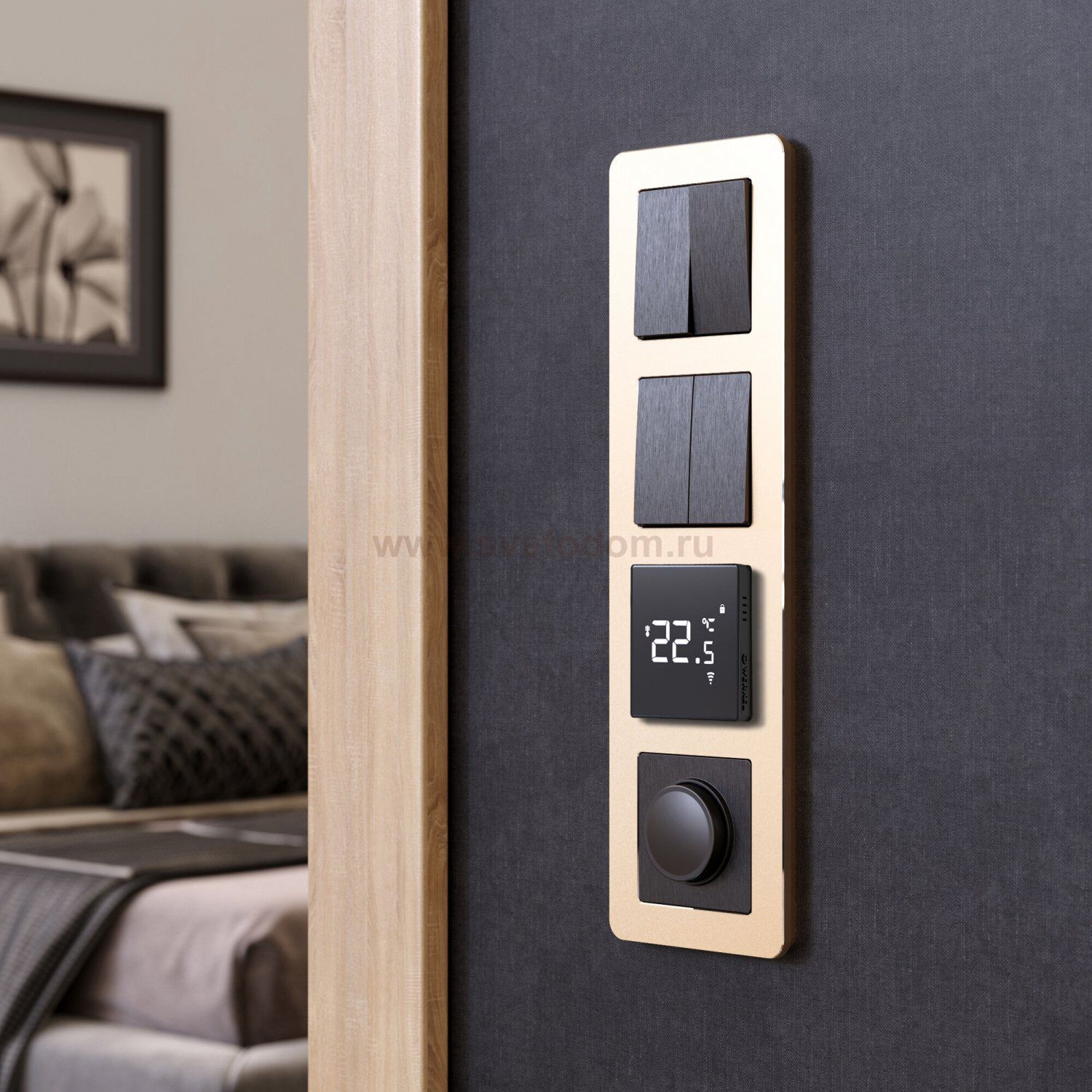 Гармоничное сочетание рамок Platinum с матовыми, глянцевыми и рифлёными фактурами механизмов из богатой