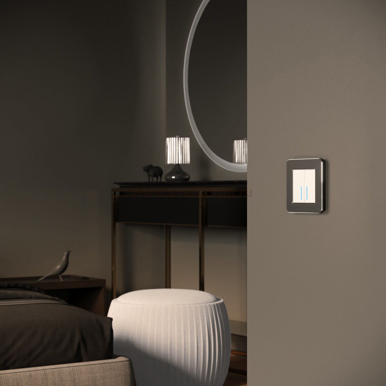 Гармоничное сочетание рамок Platinum с матовыми, глянцевыми и рифлёными фактурами механизмов из богатой